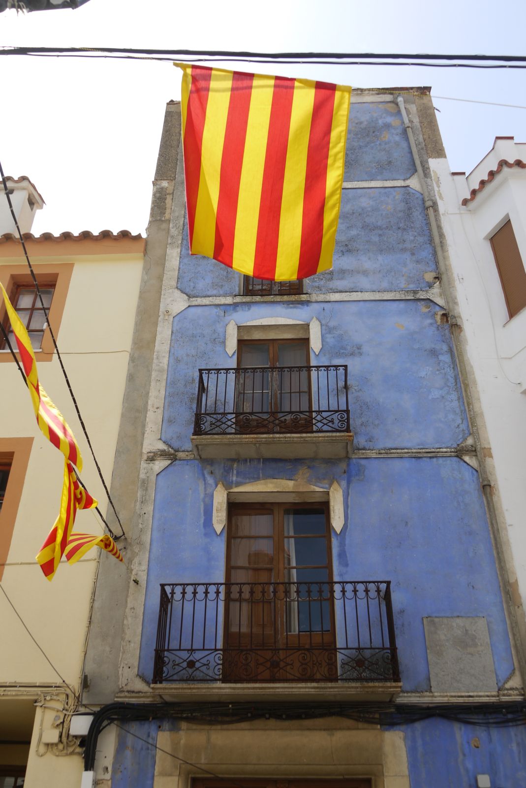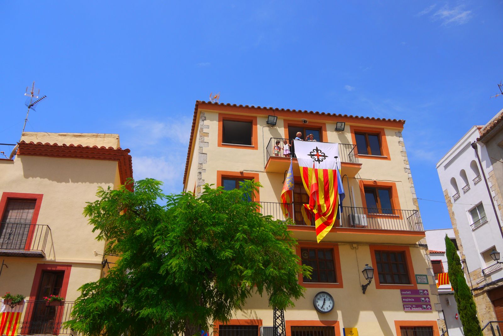 Aquí podeu veure l’Ajuntament. Aquesta bandera és la que hi ha als balcons i a les finestres dels habitatges. Són totes iguals, només canvia el tamany. Tot plegat fa que quedi la decoració molt elegant i unificada. Aquí es nota que cuiden els detalls al màxim.