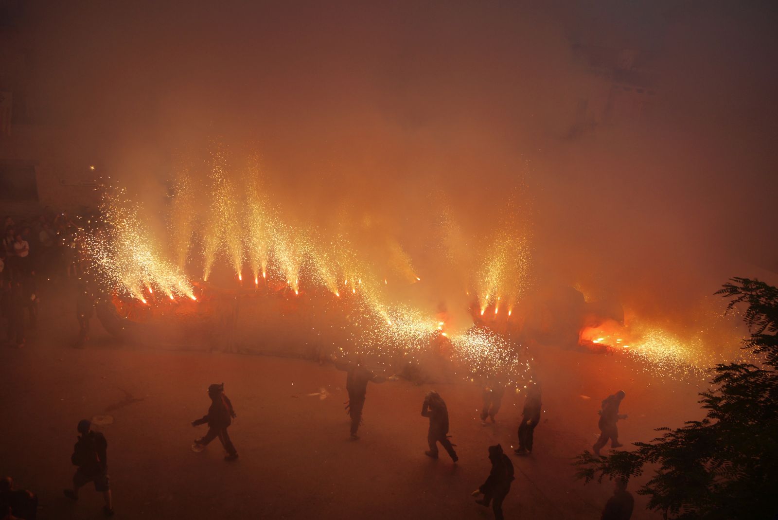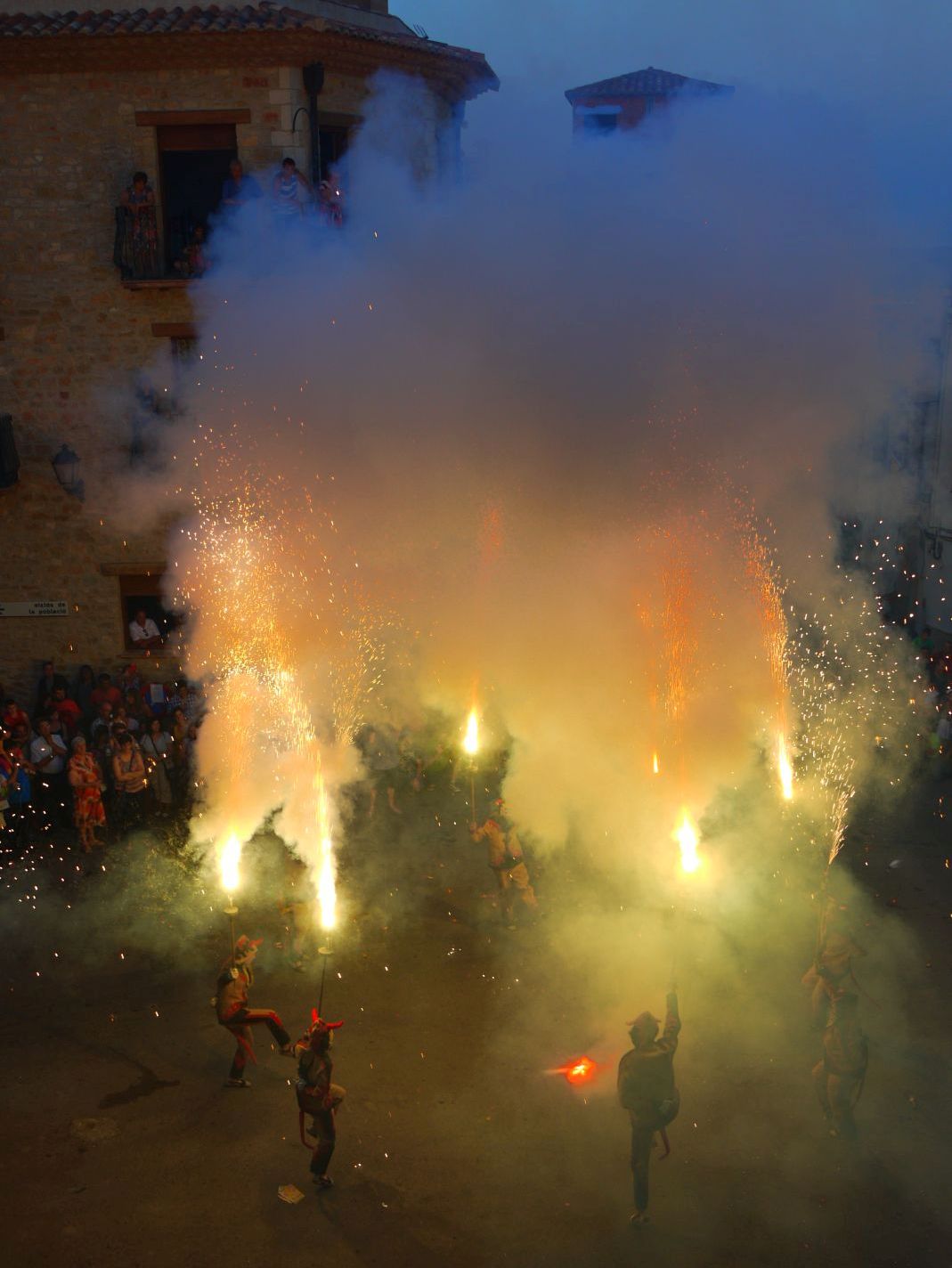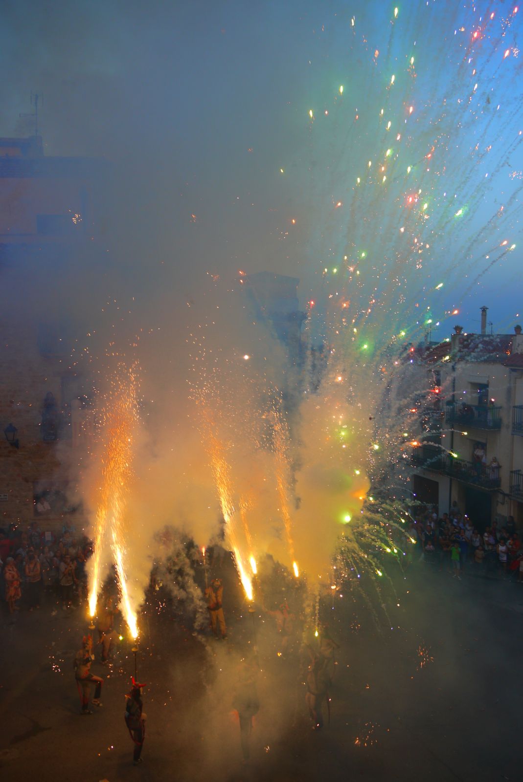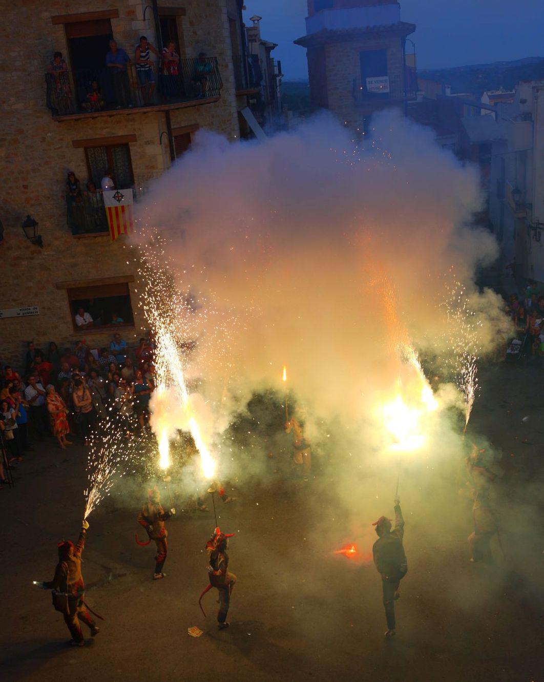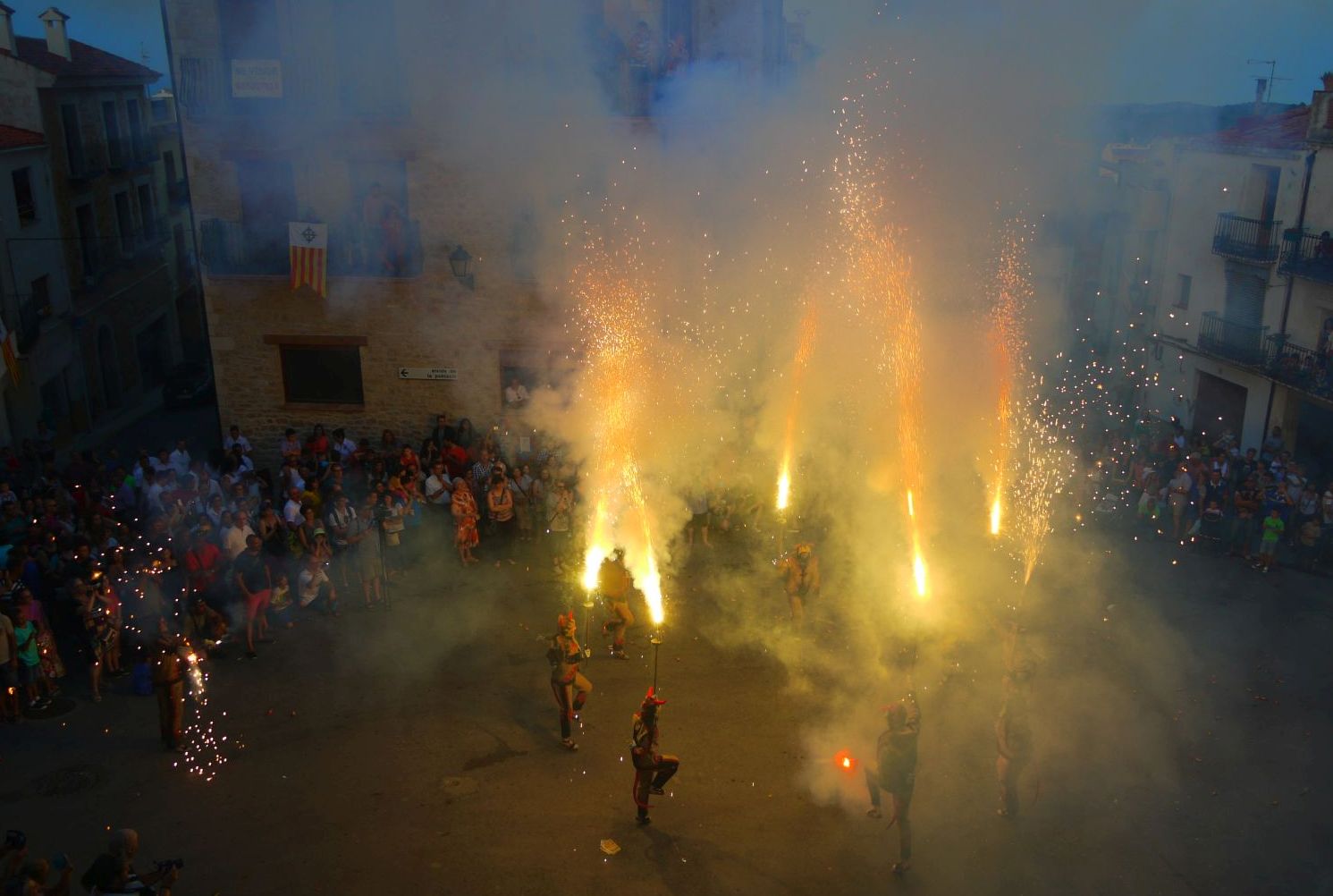 Cal agrair que em pogués situar en un dels balcons de l’Ajuntament ja que des d’allí es tenia una vista fantàstica de l’espectacle. Les tres fotografies fetes des de la plaça són de Glòria Gabas que les ha cedit pel post. Gràcies Glòria!