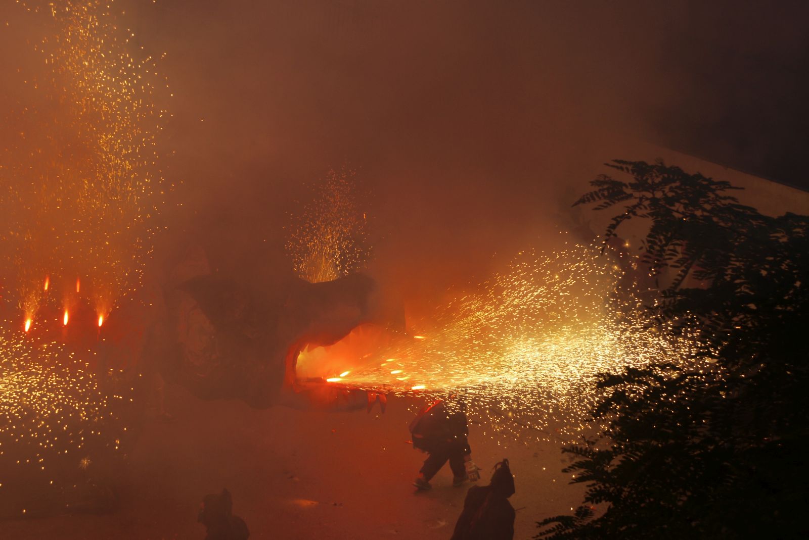Els Diables Carranquers van fer un foqueral molt lluït que va acabar amb un escampall de paperets de colors.