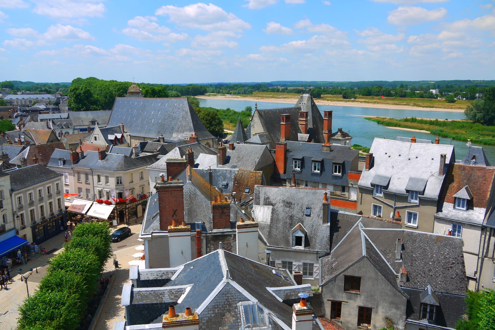 El Loire, ben a la vora, acompanya aquest reguitzell de castells construits quasi bé a les seves ribes.