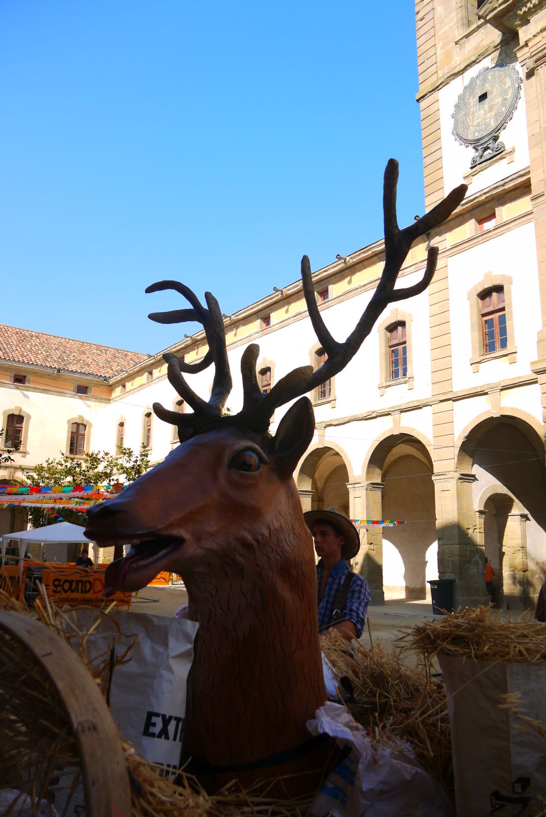 Tibau, el cèrvol dels Bombollers espera pacient l’hora de sortida per participar a la Rua.