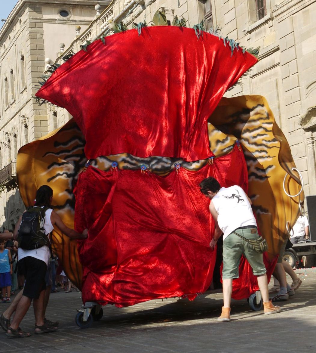 La carrossa del Rei del Carnaval va sortir en primer lloc per quedar-se col·locada a l’exterior i afegir-se al final de la comitiva. El cap d’un vistós elefant n’era el protagonista i amb aquestes calorades, la tria va ser perfecta, ja que anava bé per ruixar la gent amb l’aigua que li sortia de la trompa. Tot un encert!
