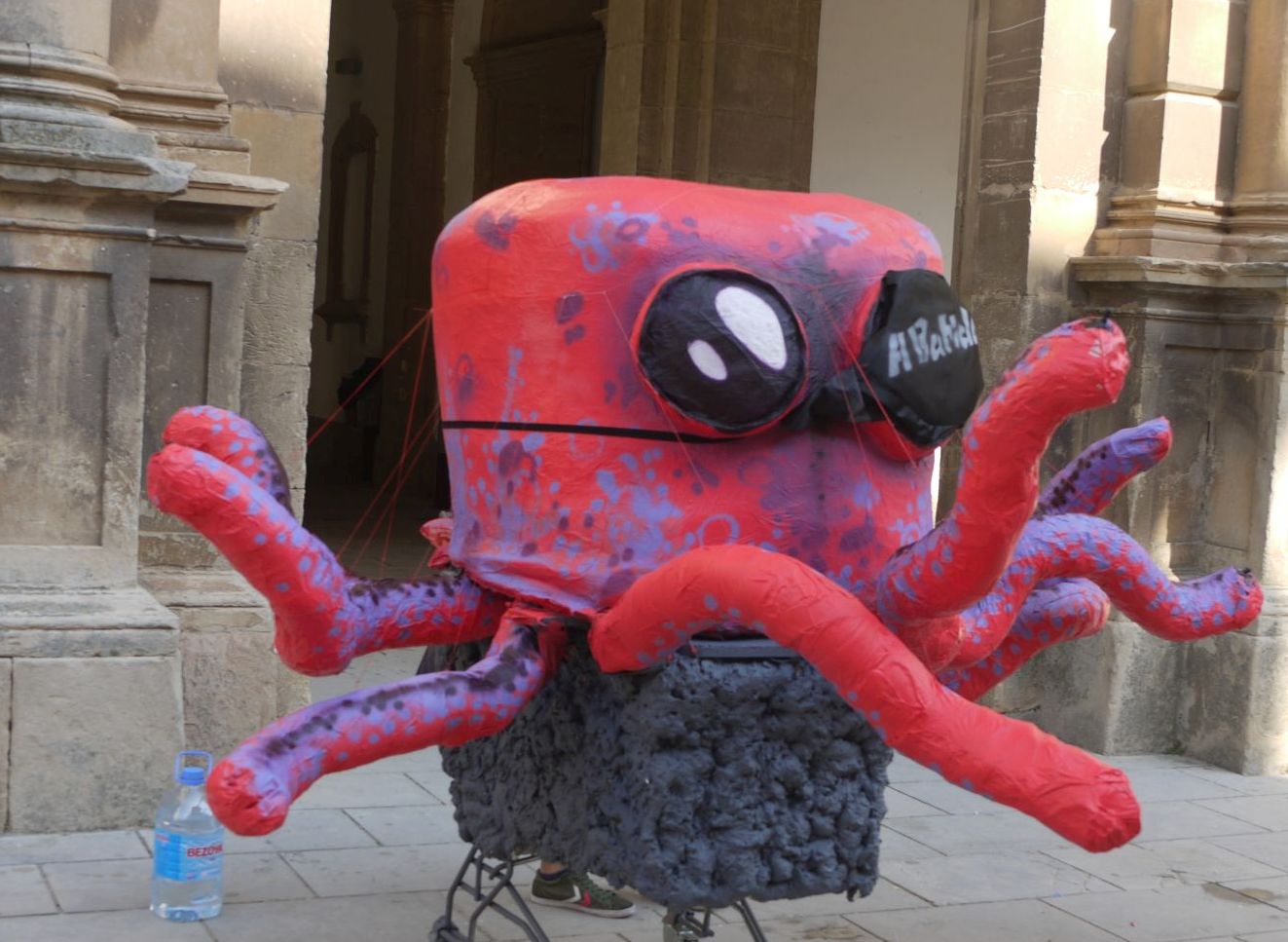 Un altre animaló, en aquest cas un pop molt vistós, també espera el seu torn. Adoneu-vos que ja té preparada una bona ampolla d’aigua que amb la calor anava molt bé!