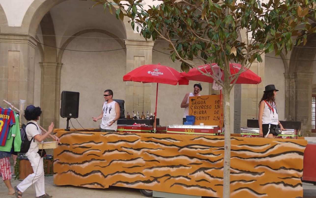 Un divertit bar amb rodes venia tota classe de refrescos per apaivagar la sed. Aquí vèiem a Xavi Badia, un maquillador extraordinari, que va tenir cura de la tranformació visual del grup de les Bantokades.