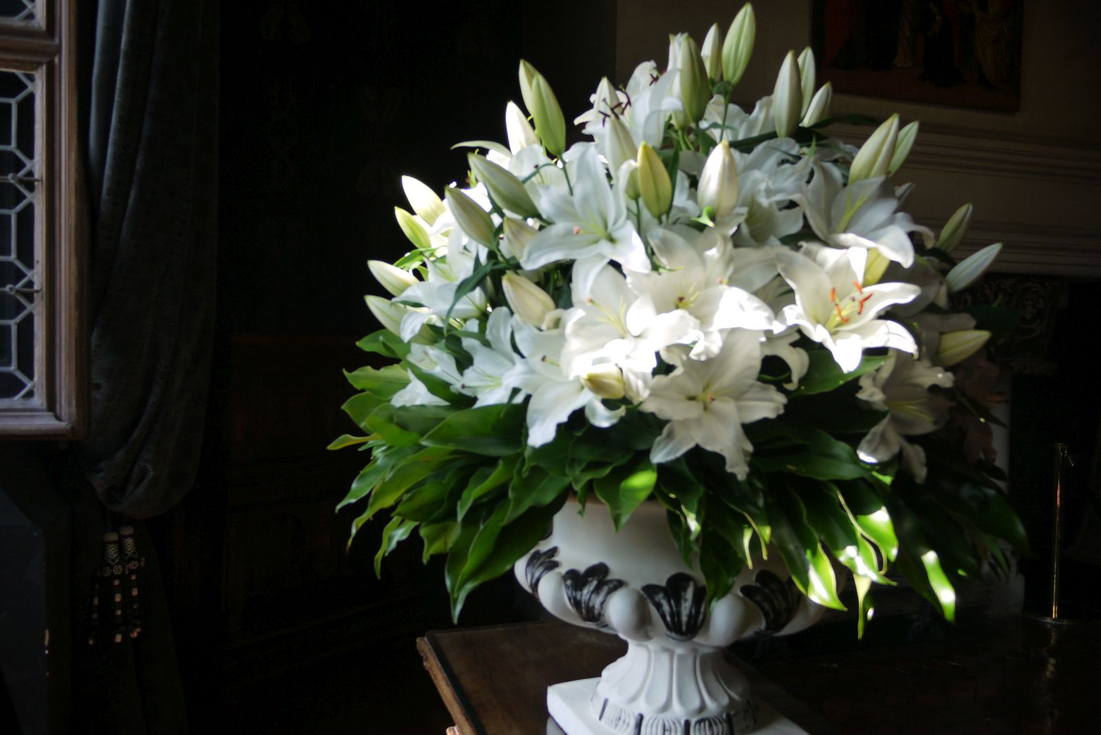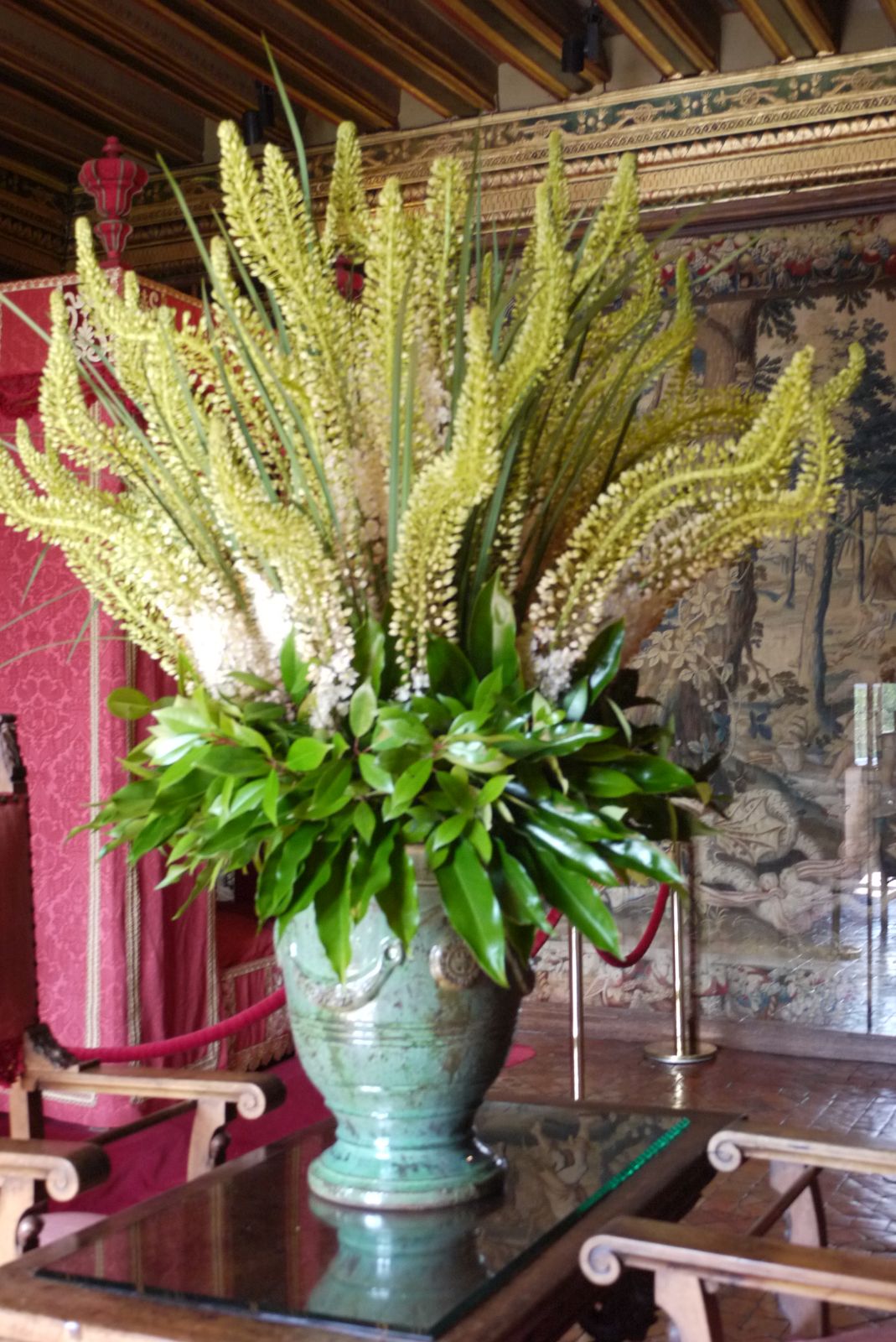 És un castell meravellós amb una part construïda damunt l’aigua. Entre moltes altres coses, que ja explicaré en un altre post, aquest castell té fama per l’ornamentació floral. A prop del castell hi ha un espai dedicat a la jardineria en el que s’hi cultiven tota classe de flors. Un dels atractius rellevants en visitar aquesta edificació és poder admirar aquest conjunt de meravelloses composicions florals fetes per mans expertes. Els gerros i altres recipients adients per posar-hi les flors estan repartits per totes les estances del castell i val a dir que enamora de veure-ho.