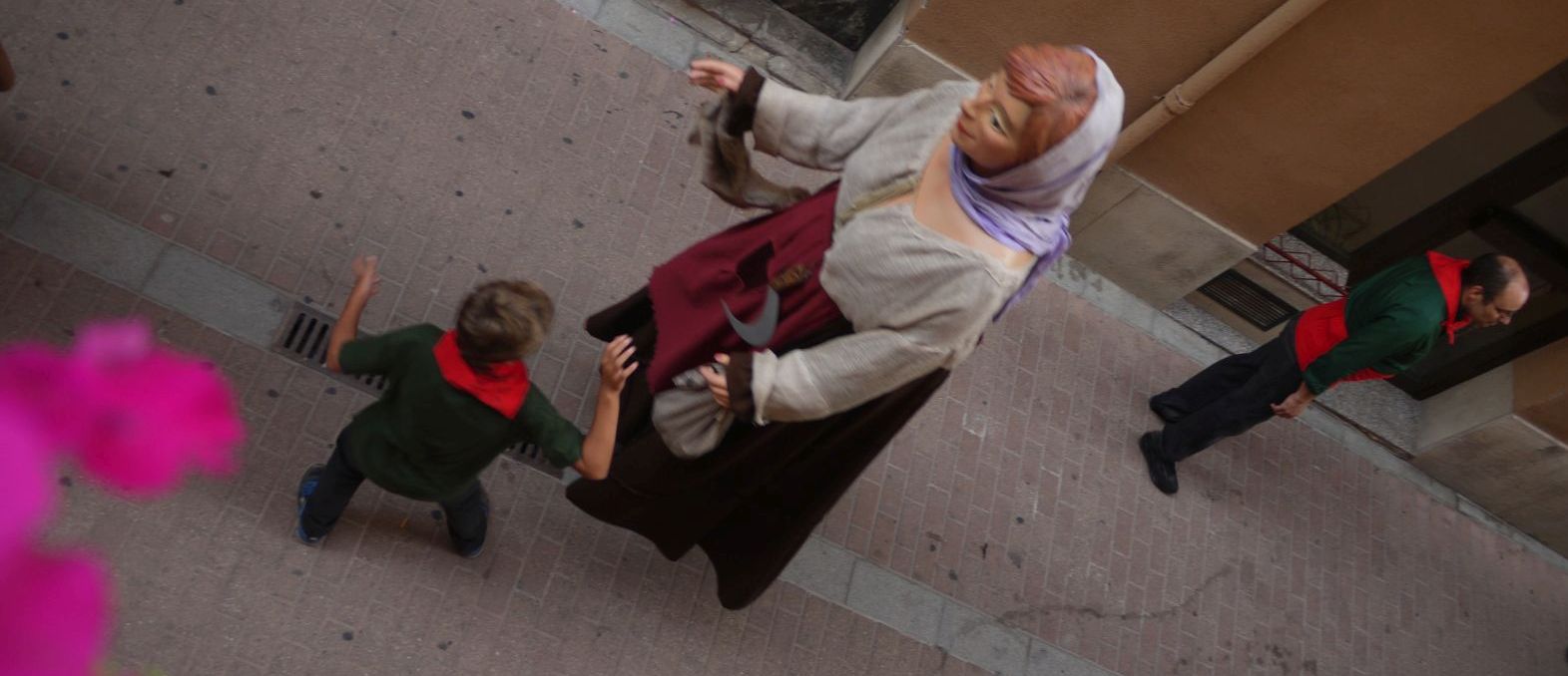 Els gegants de l’Agrupació, En Treball i Na Cultura enfilen el carrer Travesser iniciant aquest seguit d’imatges diferents i especials.