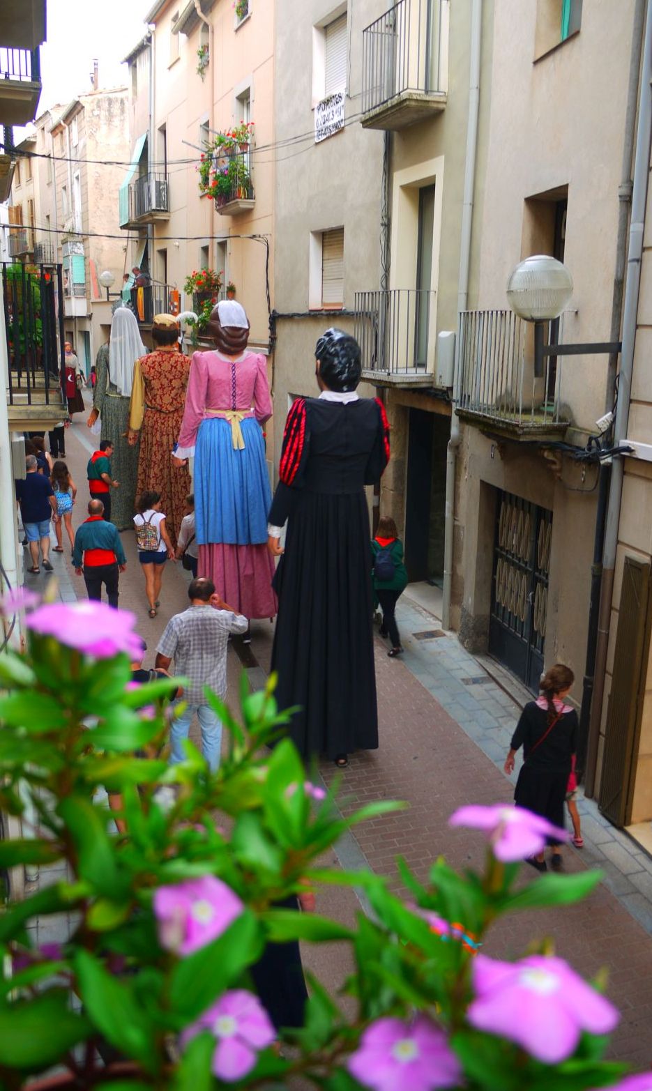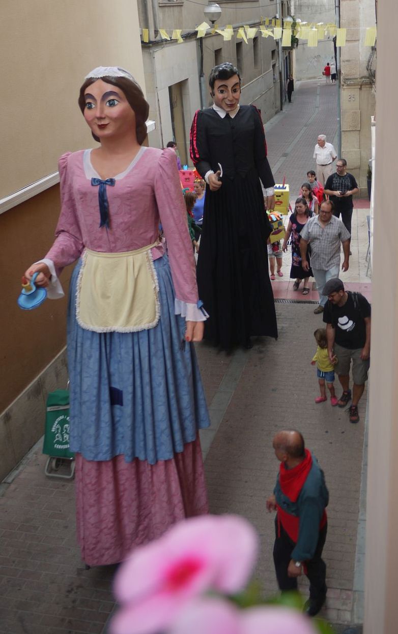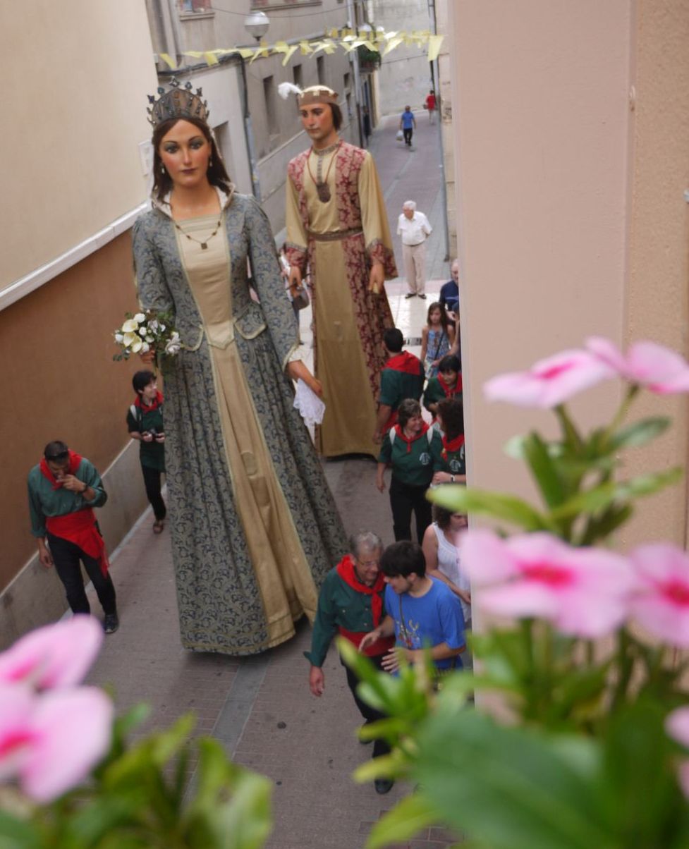 En aquest segon post podreu veure unes imatges ben especials. Mai havia fotografiat els gegants en aquest carrer ni he vist cap fotografia en que s’hi vegin És el recorregut, del tot inusual, que va fer la cercavila: va passar pel carrer Burgos, més conegut popularment per carrer Travesser. És una drecera per la que els gegants no hi passen. Sempre donen el tomb per l’avinguda Catalunya i enfilen el carrer Combat.