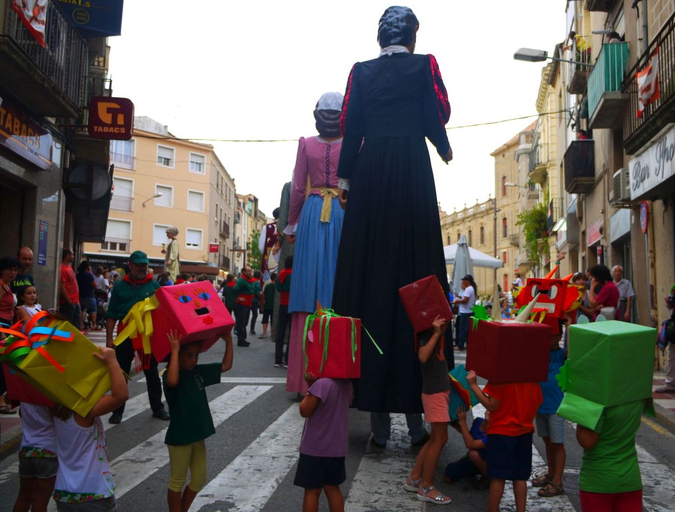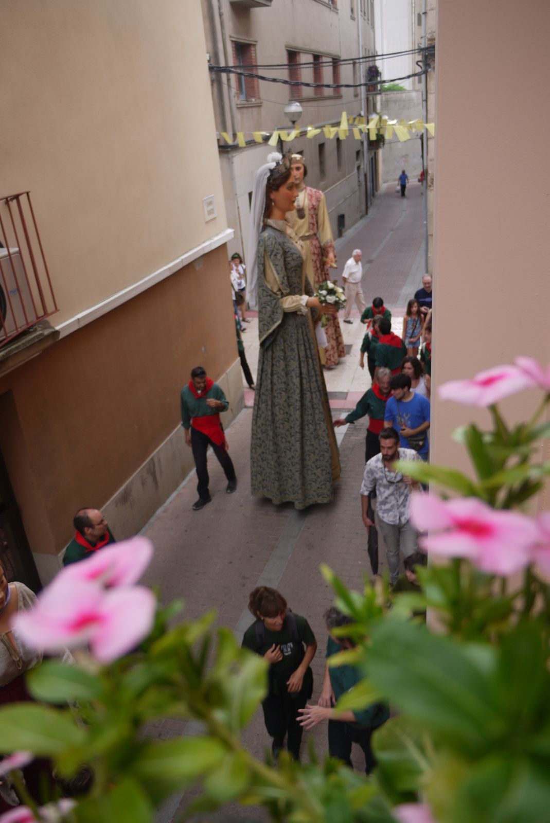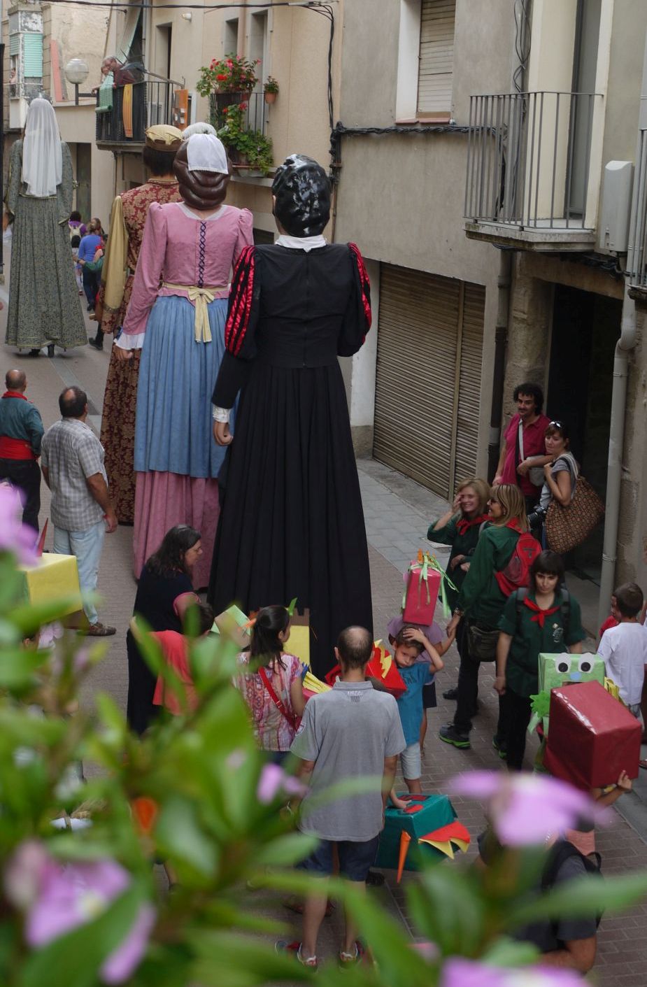 En aquest segon post podreu veure unes imatges ben especials. Mai havia fotografiat els gegants en aquest carrer ni he vist cap fotografia en que s’hi vegin És el recorregut, del tot inusual, que va fer la cercavila: va passar pel carrer Burgos, més conegut popularment per carrer Travesser. És una drecera per la que els gegants no hi passen. Sempre donen el tomb per l’avinguda Catalunya i enfilen el carrer Combat.