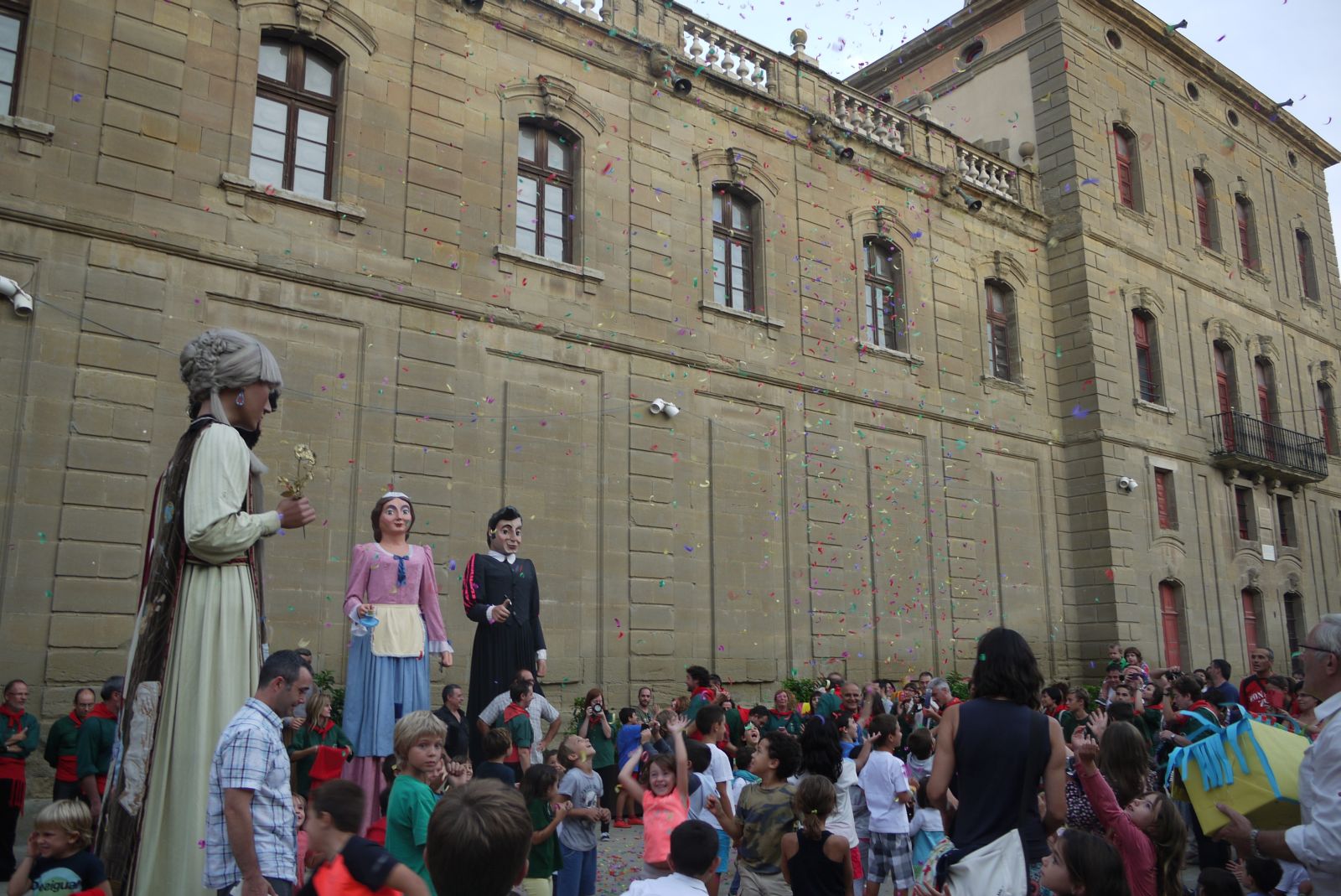 Quan fan l’última actuació a Cervera els Gegants Treball i Cultura amb el Ball de l’Aniversari i dels Gegantons Pau i Alegria amb Peuets de gegant els més menuts estan ben atents a l’espectacle.