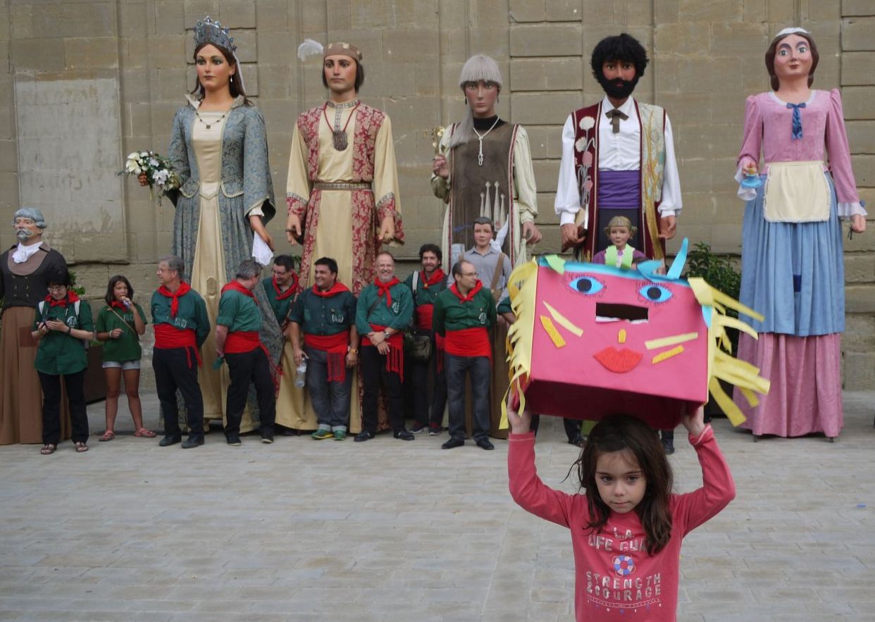 Els capgrossos surten a ballar davant la mirada atenta dels Gegants i Gegantons.