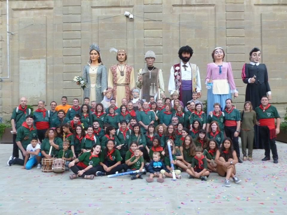 Dóno les gràcies a Mariana Venteo per haver-me cedit aquesta fotografia històrica. Hi podem veure plegats Gegants i Geganters. Ara ja només restarà fer l‘entrega dels Gegants de l’Agrupament a la ciutat de Terrassa que és la que entomarà l’honor de ser la propera en assolir aquest títol.