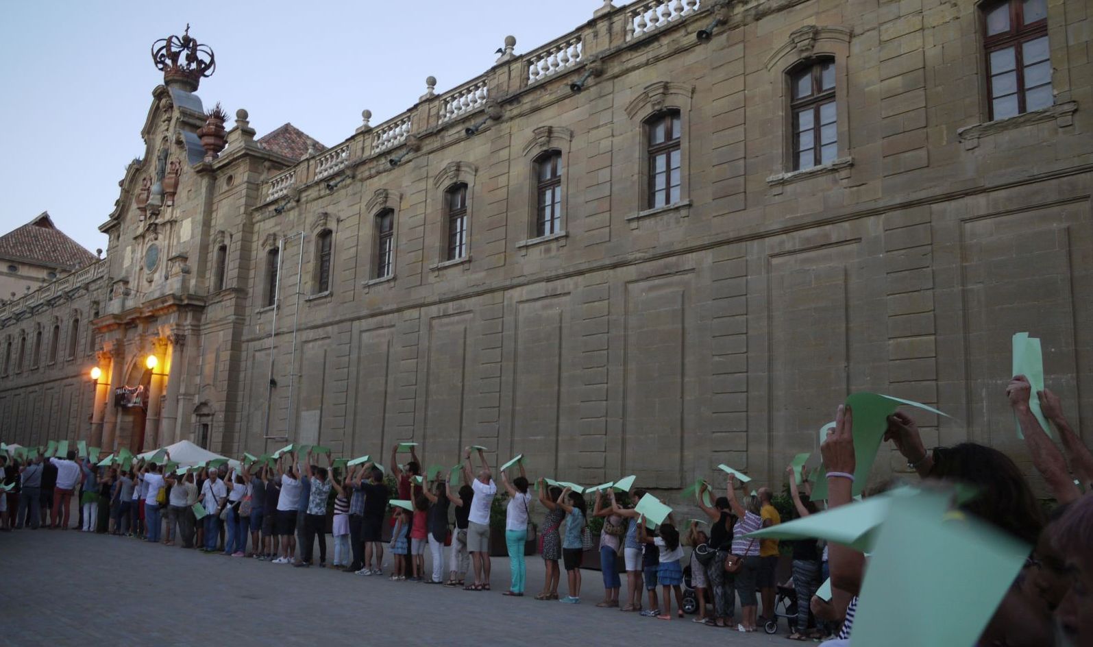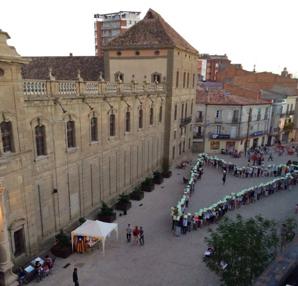 A quarts de nou hi havia convocat fer un punter. Era en preparació de cara al proper 11 de setembre en que tots/es estem convocats a la concentració de Barcelona. Els organitzadors van repartir un full verd per tal de que al deixar-ne constància visual quedés ben visible.