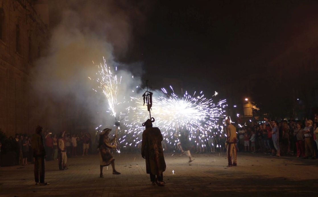 Comença el correfoc davant la façana de la Universitat.