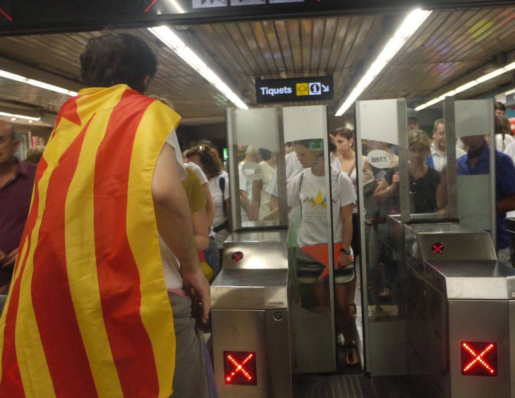 …a altres indrets. Fins i tot al metro que va transportar milers de persones la festa hi era present, tot i que espantava una mica i faltava l’aire per respirar trobar-te emmig d’aquest allau de gent.