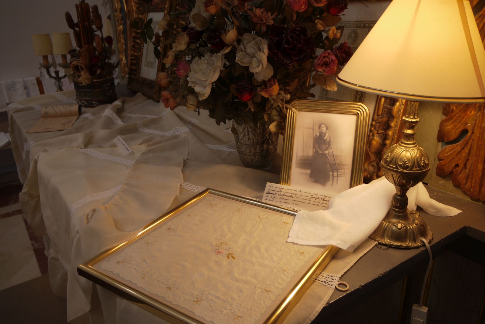 Aquí la podeu veure quan ja era una noia. Aquests mocadors, l’emmarcat és de seda natural, els havia brodat ella.