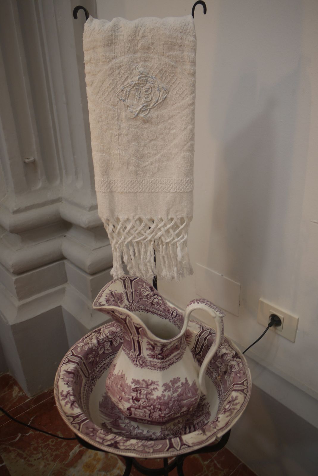 El palanganero sosté un gerro i una palangana que servien per rentar-se. Les tovalloles, sempre marcades amb el nom, lluïen serrells ben elegants.