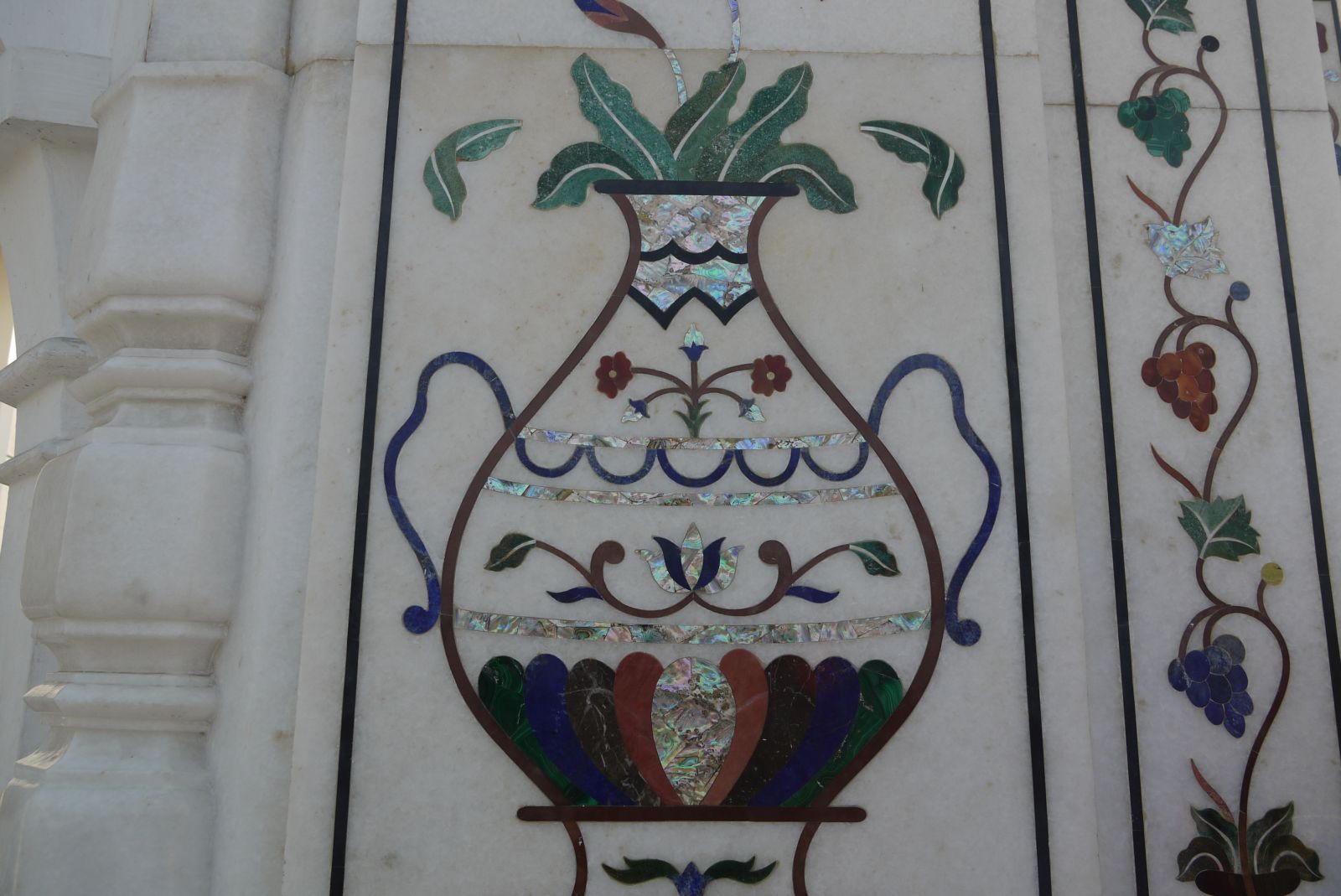 Un exquisid treball fet amb pedres semiprecioses incrustades al marbre fa que l’ornamentació sigui esplèndida.