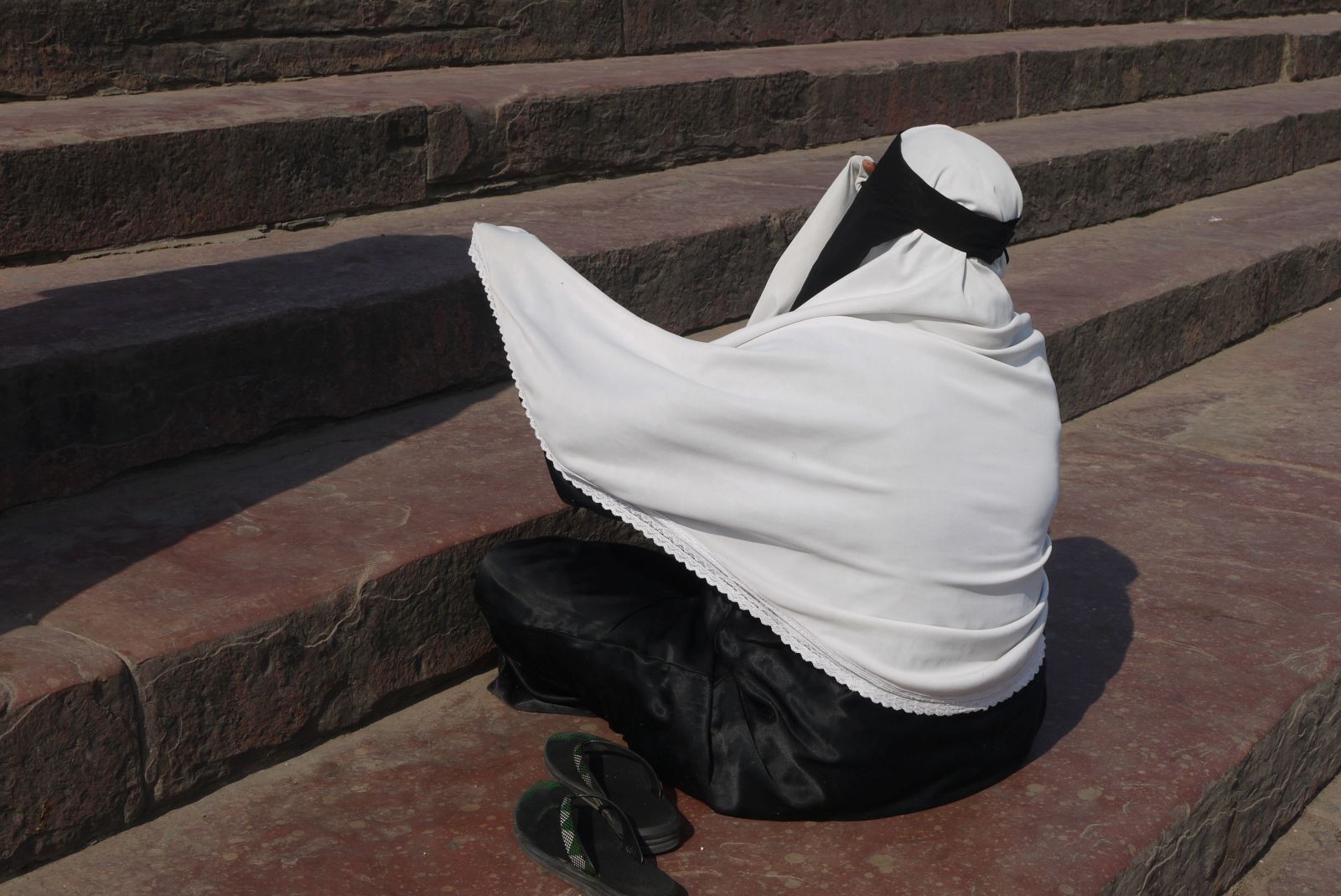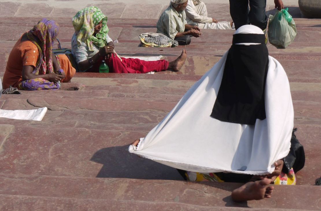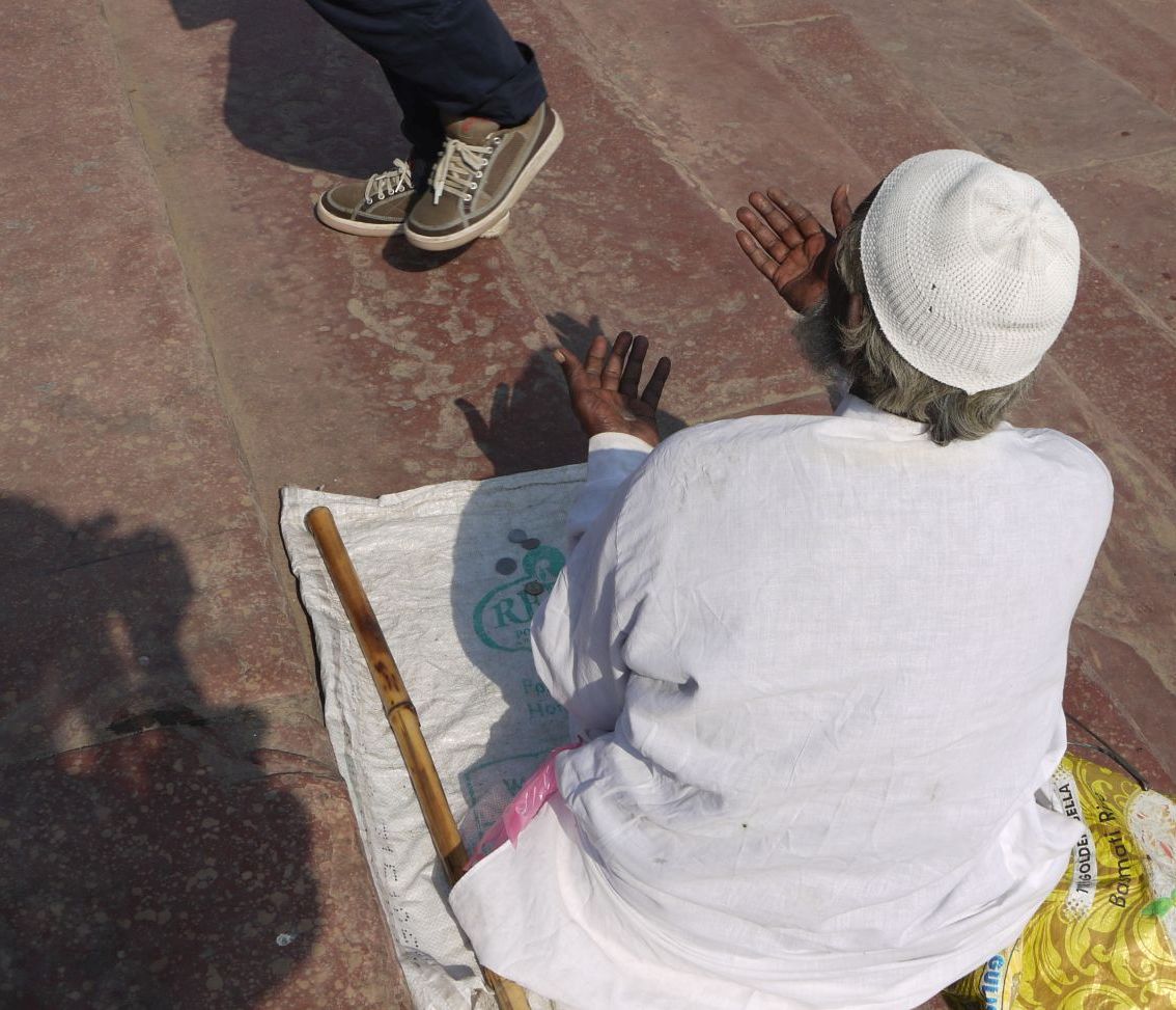 Els accesos als temples sempre estan plens de gent que demana una almoïna: el protagonista, el que passa de llarg i la que capta la imatge.