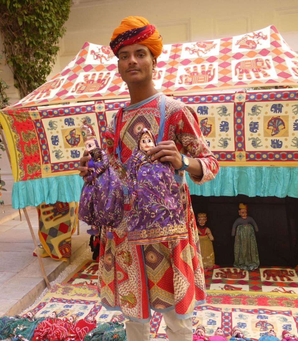 Aquest tenia un bon ofici. Ja se li nota a la cara. Venia artesania en un espai de l’interior d’un palau de marajà, ara reconvertit en hotel.