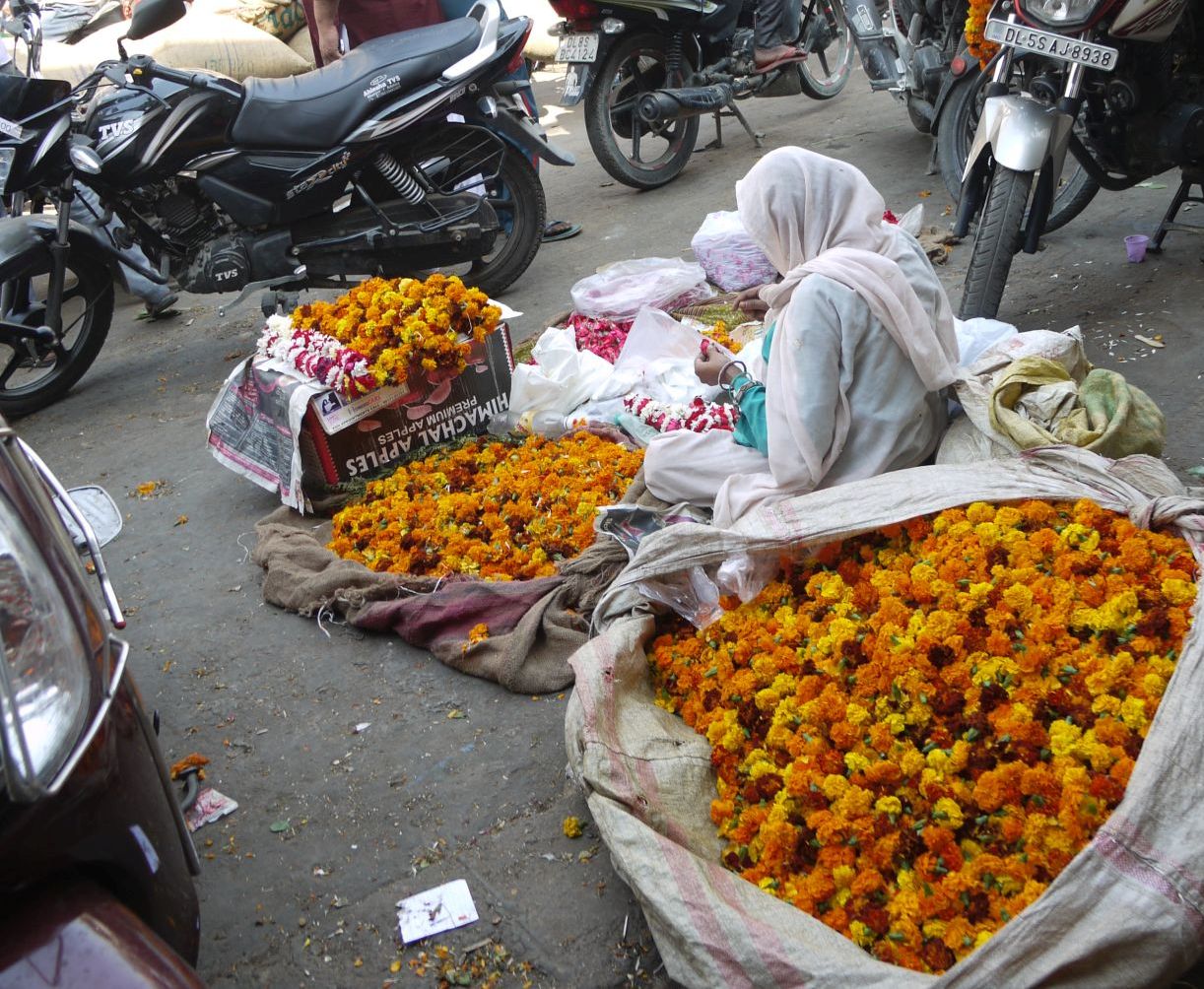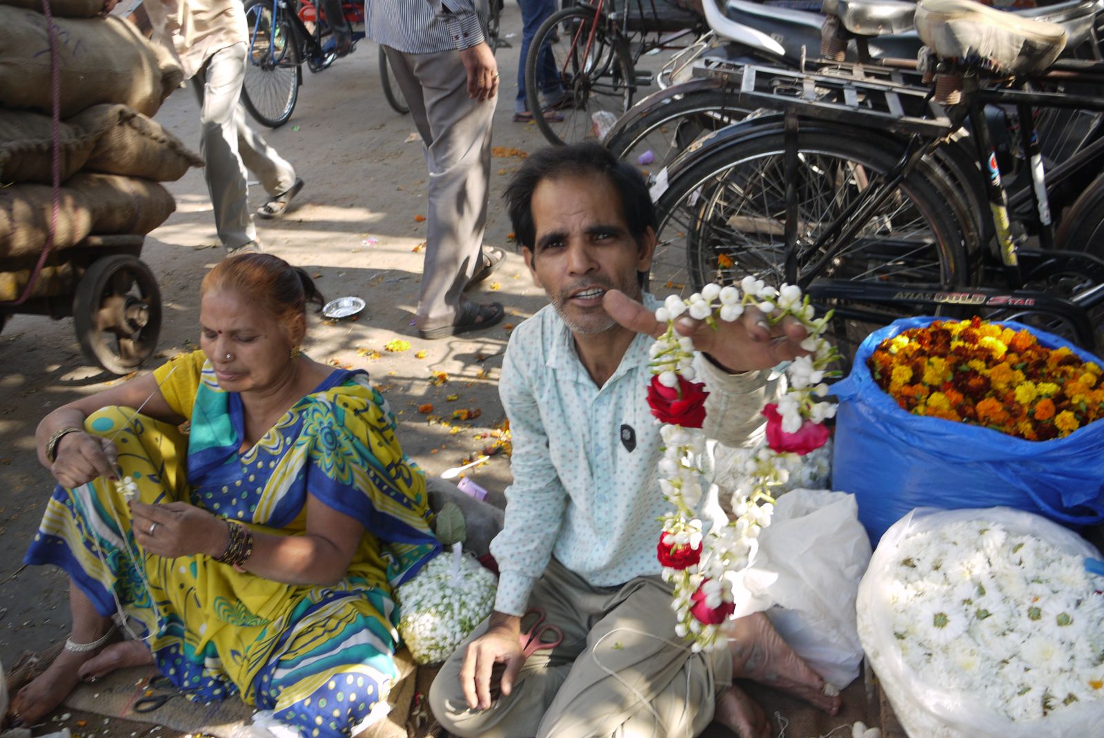 Les flors no es venen amb tija. Sovint les ofereixen enfilades en bonics collarets. La senyora els fa i el marit els ven.
