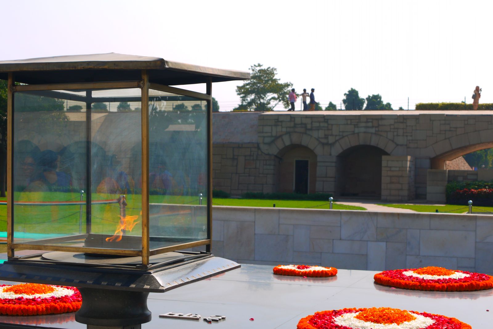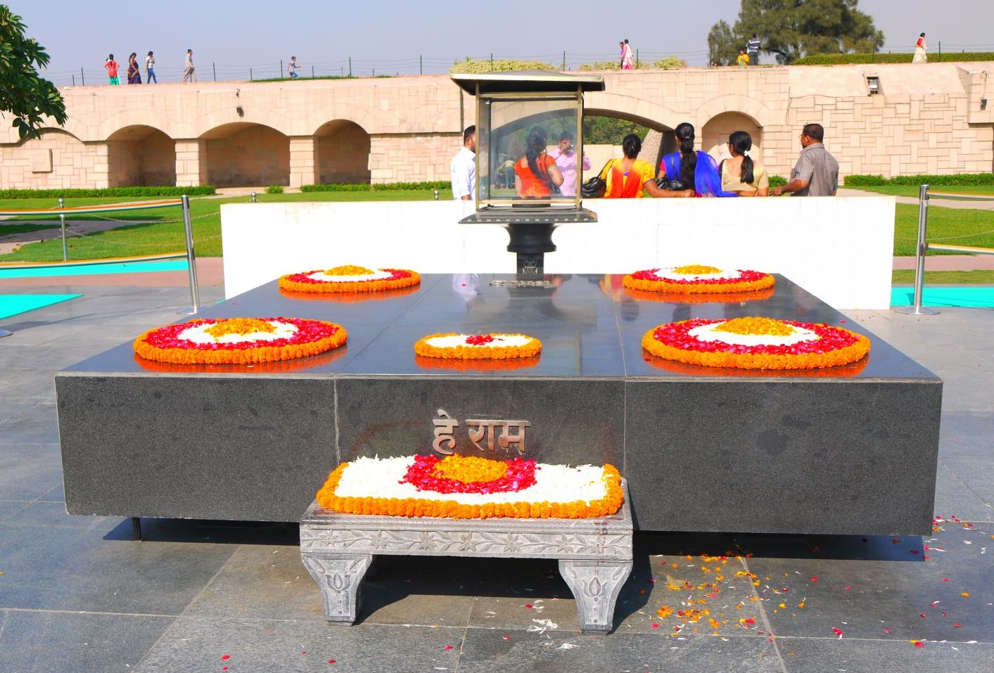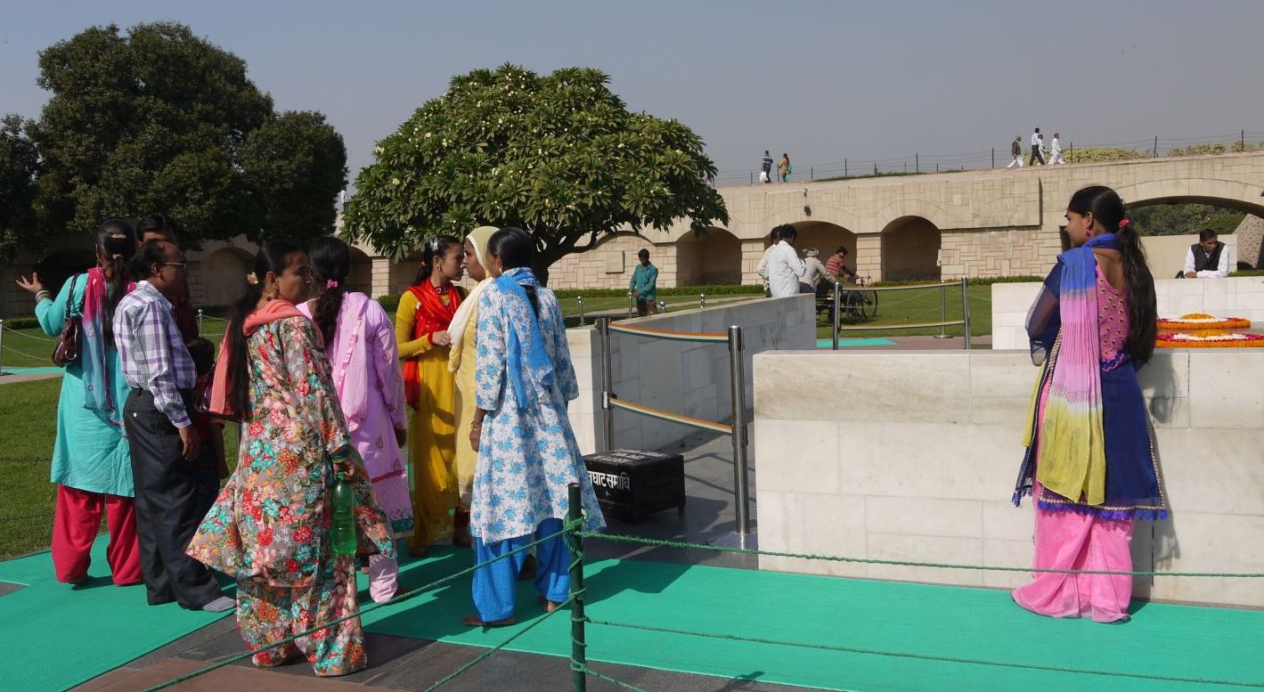 Families senceres s’apropen a aquest lloc sagrat per tal de recordar l’estimat pare de la pàtria, el Bapu, que vol dir Pare. Així l’anomenaven.