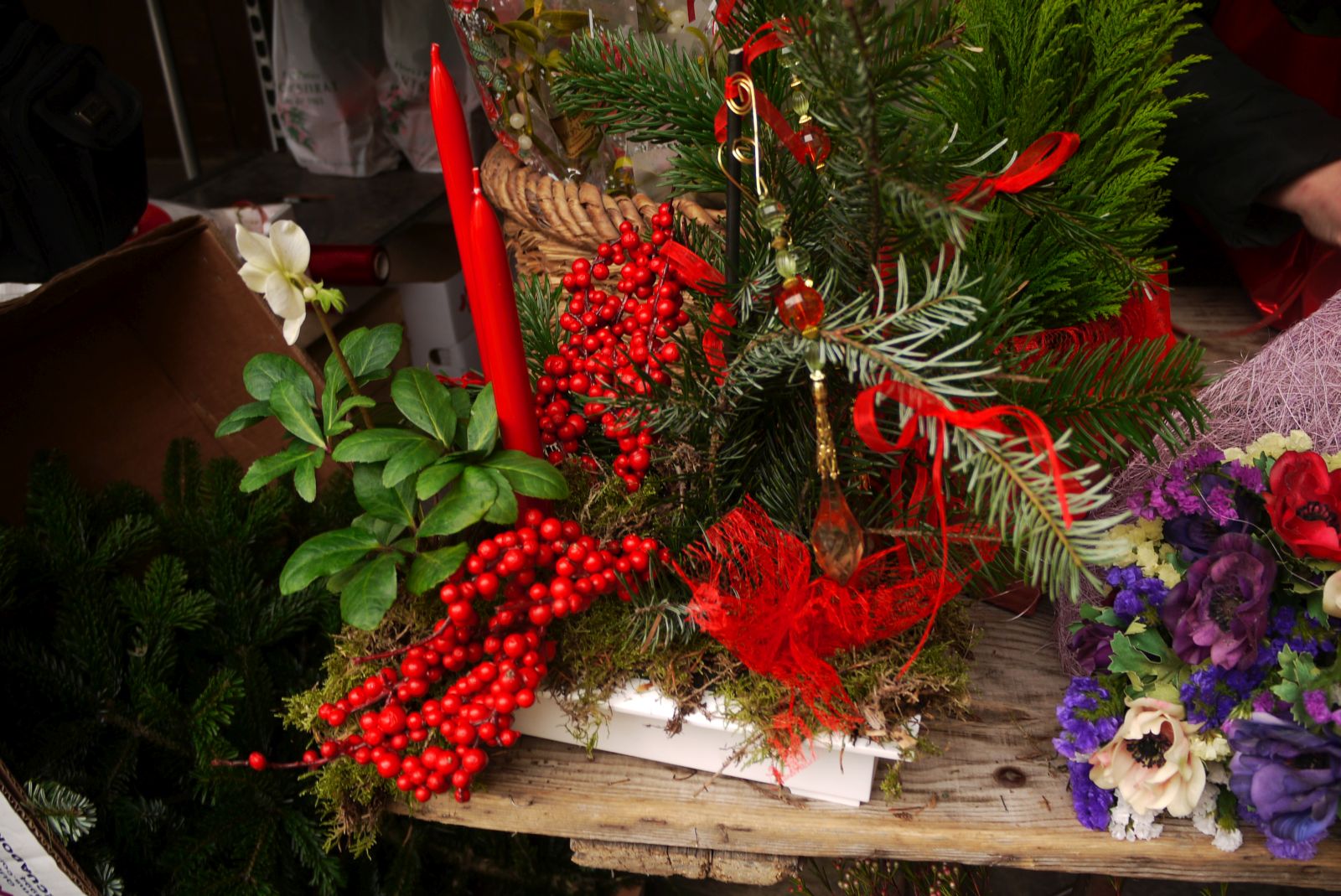 El que primer vaig trobar va ser una parada, la de Floresteria Montserrat, que feia molt goig. Els embelliments florals de Nadal, amb tonalitats vermelloses, animen molt i fan sensació de festa.