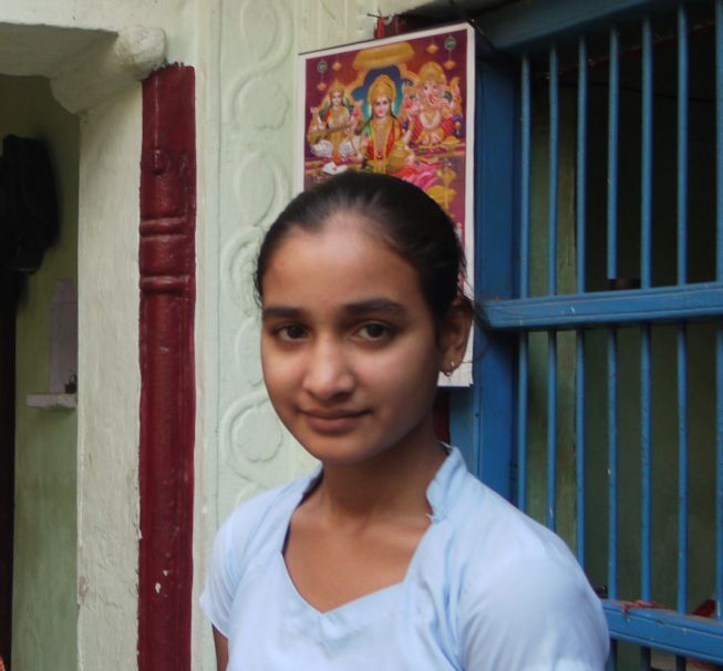Delicada adolescent. L’acolorida imatge que es veu al darrera representa els seus déus. En aquesta llar devien ser molt religiosos ja que tenien una habitació com si fos una capella. Vaja com la de la casa Duran i Sampere!