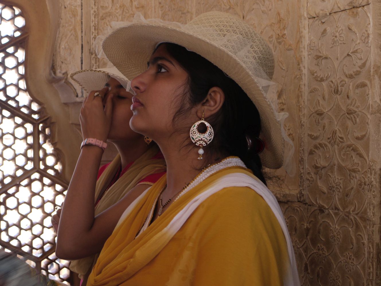 Guapa com la darrera rani de Jaipur, visita els palaus on les dones vivien en una zona retirada quan es casaven i desapareixien de la vista de tothom. Les celosíes servien per mirar sense ser vistes.