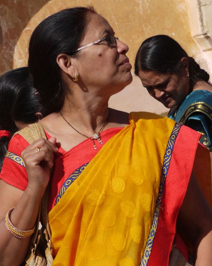A l’Índia hi ha gent que té la pell molt fosca i altres molt clara. Aquests colors vius els hi queden molt bé!