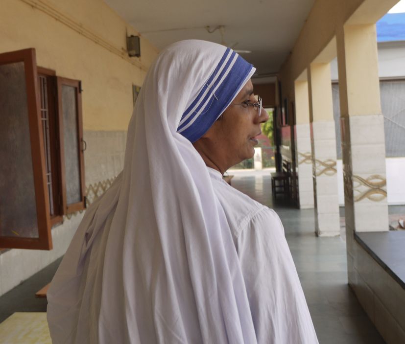 Centre de la Mare Tresa de Calcuta a Agra. Un àngel de blanc i blau.