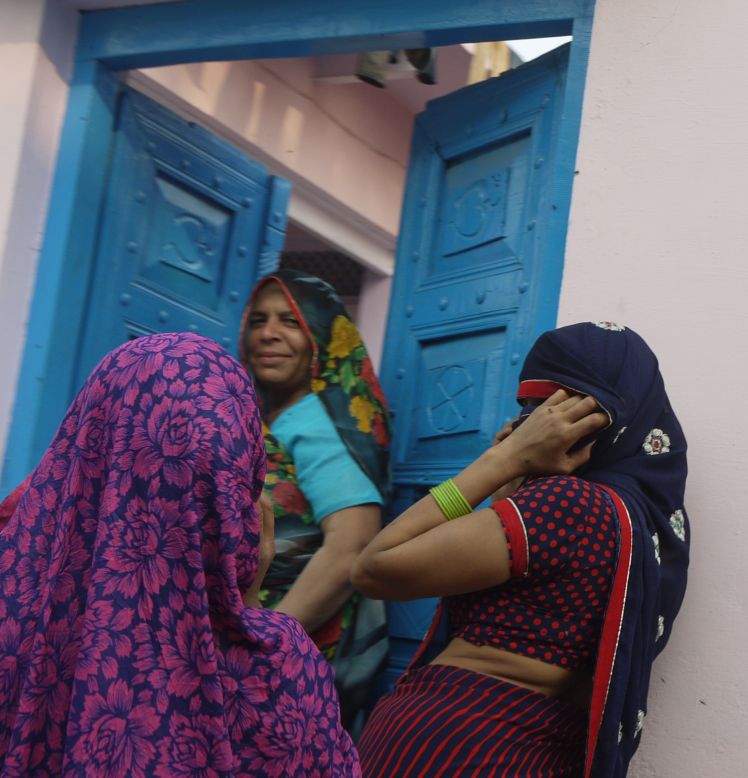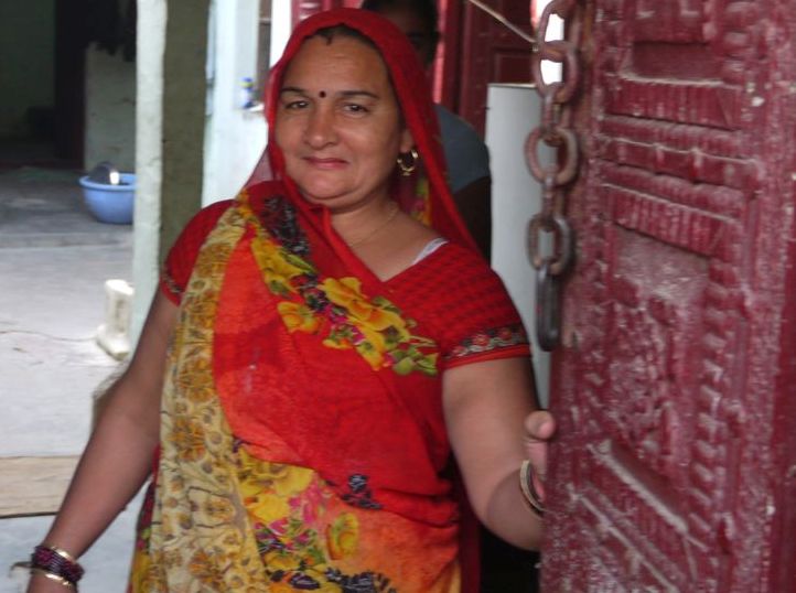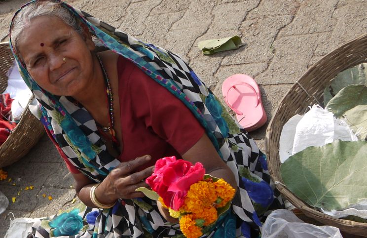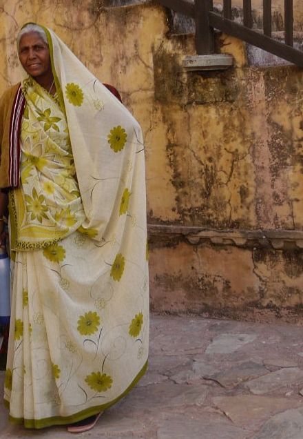 Teixidora de catifes. Observeu la petita eina que porta a la mà dreta per treballar així com també els braços plens de bracelets. Els hi encanten!