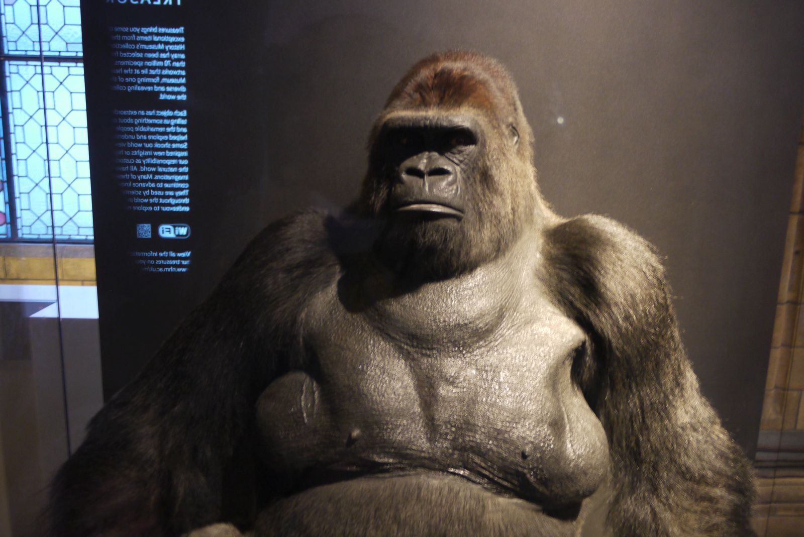 Pel que fa a l’interior del museu, que llueix una arquitectura imponent, només mostro una imatge: la d’aquest simi tan estimat a la ciutat i que vivia al zoo de Londres. El deixo com a testimoni de la gran quantitat d’animals que es poden veure a les sales del museu: elefants, girafes, búfals…fins i tot un parell d’esquelets de balena. Podria ser que fos el més complet del món pel que fa a aquesta temàtica.