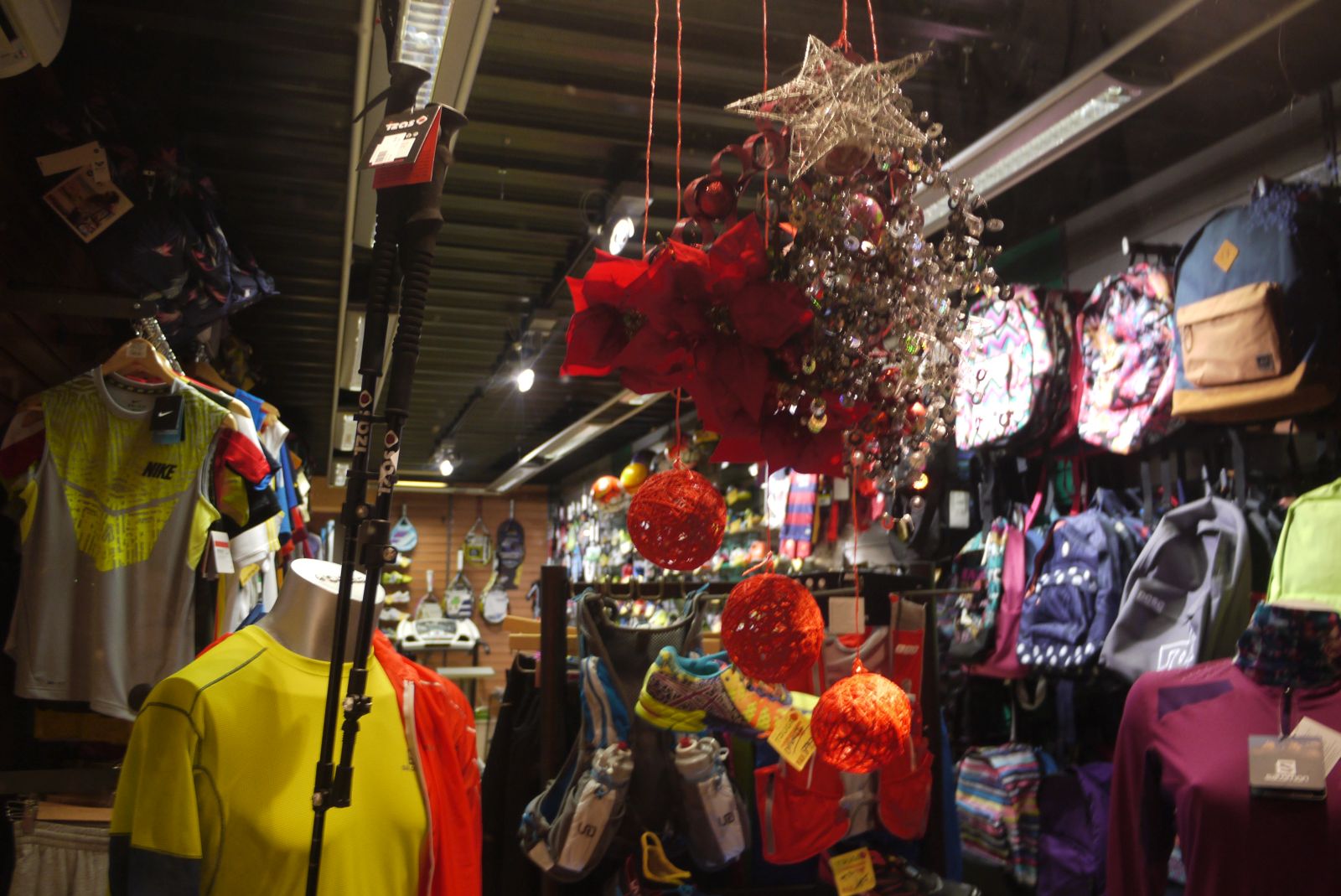 Esports Truga és un esclat de color ja que el seu material, per ell mateix, dóna alegria. S’ha reforçat amb uns centres nadalencs que li acaben de donar aire de festa.