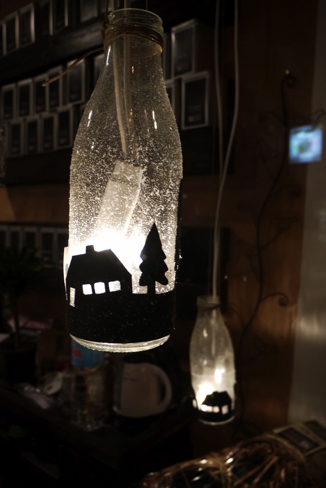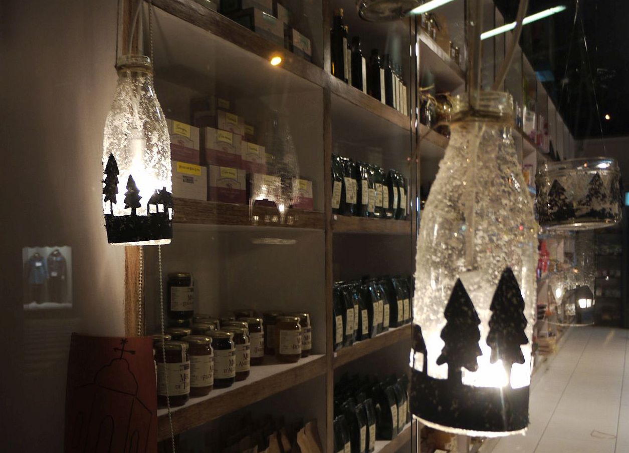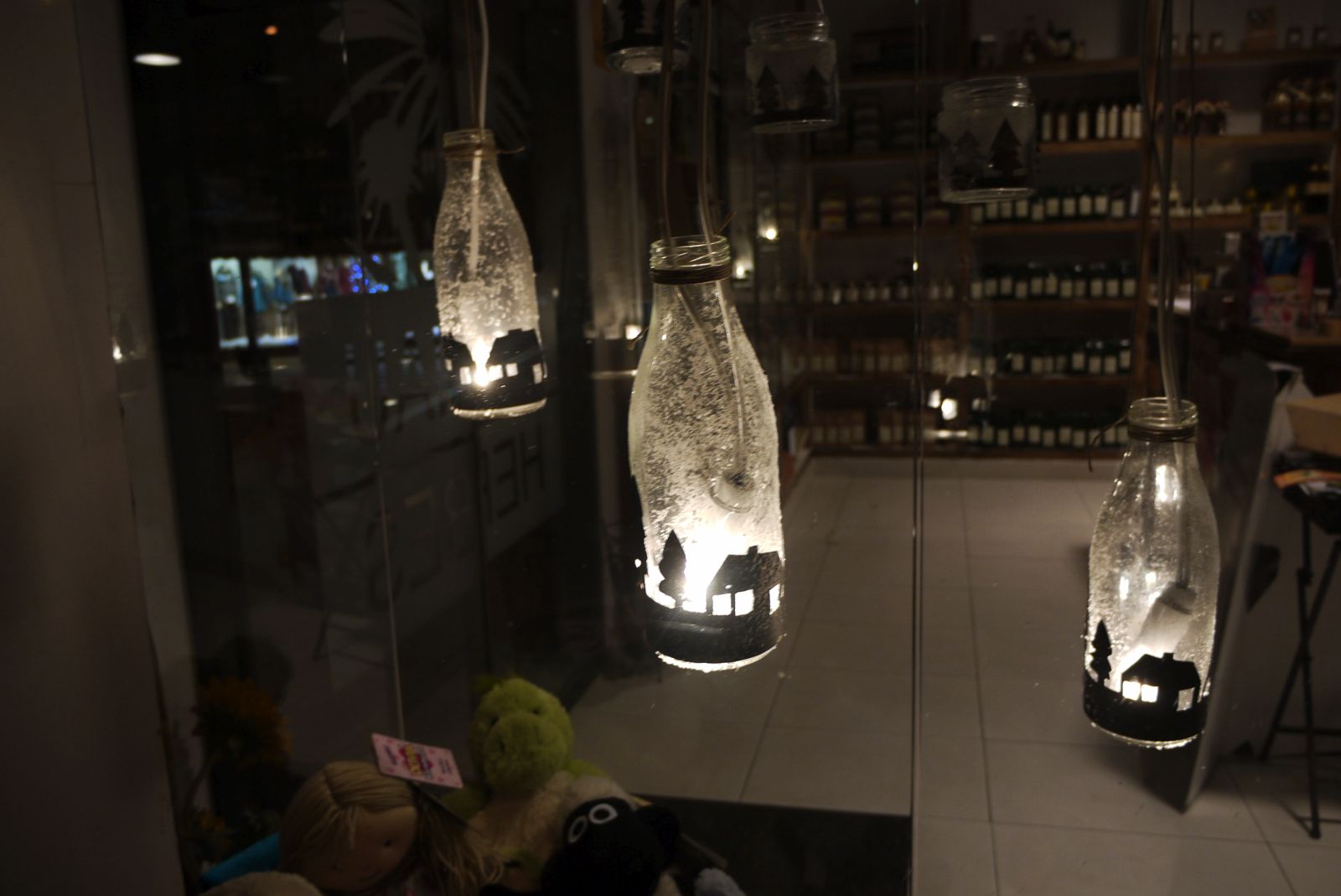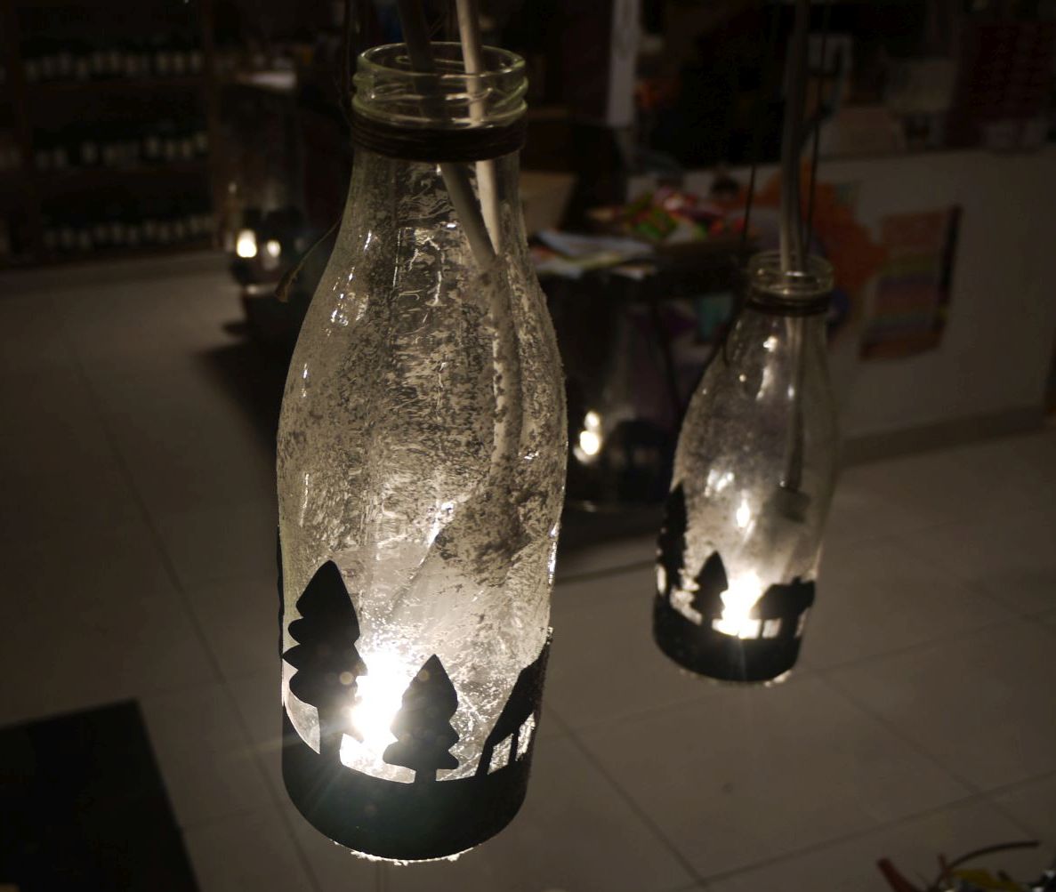 Bernaus Herbes sempre ens deixa sorpresos amb les seves propostes i, per les festes d’enguany, m’ha encantat la idea que han presentat. Unes ampolles molt ben decorades que pengen del sostre amb el suport del fil elèctric que porta la llum a la bombeta. No us perdeu una visita a aquests aparadors!