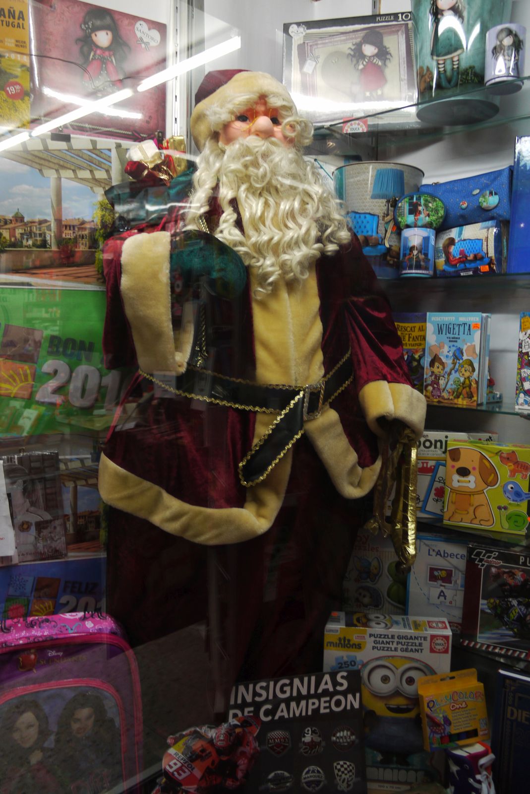 Tot i que som de tió veure el Pare Noel sempre va bé, especialment si es tracta d’una figura tan maca com aquesta. És una manera de recordar que en altres cultures aquest personatge és importantíssim. El podeu admirar a l’aparador de la Papereria i Llibreria Universitat.