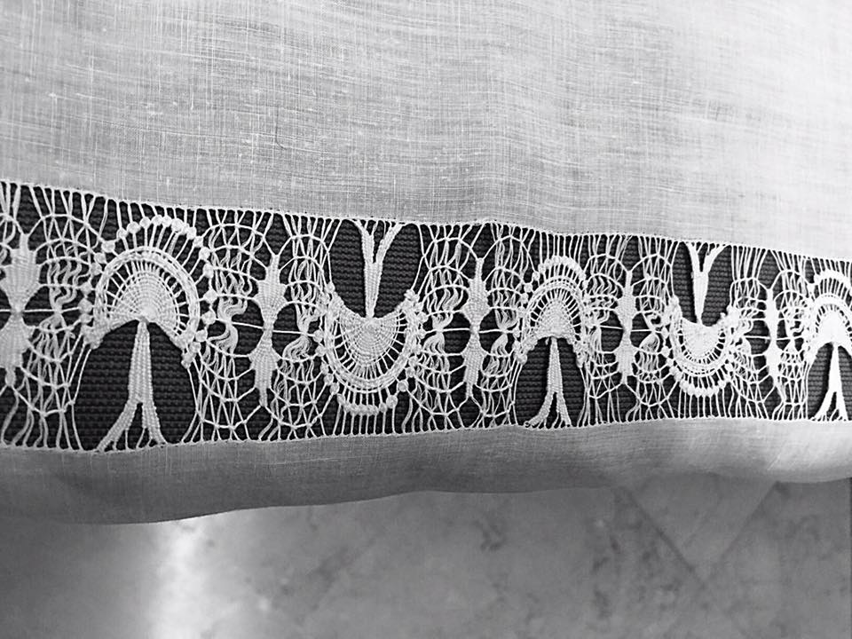 Fixeu-vos el bé que es veu el cosit de la punta a la tela de fil i la perfecció amb que està fet.