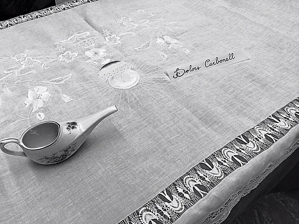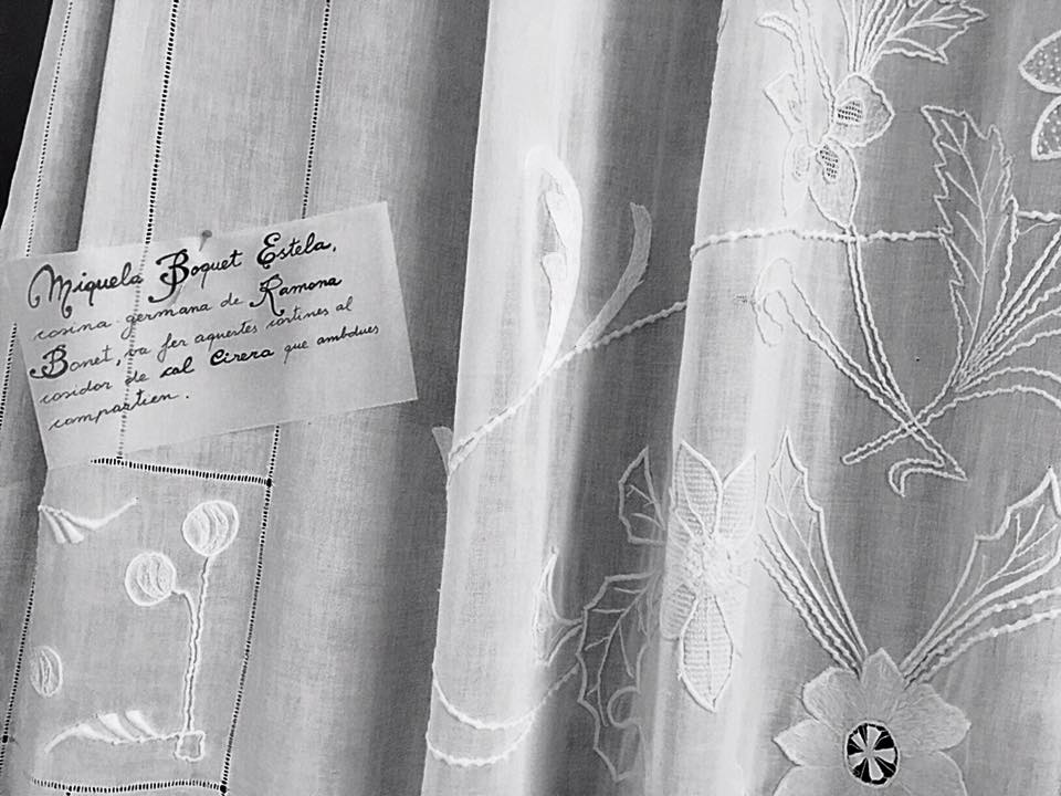 Quasi sempre, a menys que es tracti d‘imatges antigues, al blog hi trobeu fotografies en color. Farem una excepció ja que, com podreu veure, la visió de tota aquesta roba blanca, amb el fons negre, queda molt reexida. Jo diria que, fins i tot, els detalls es veuen molt millor, més ben contrastats.