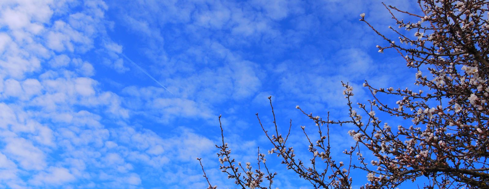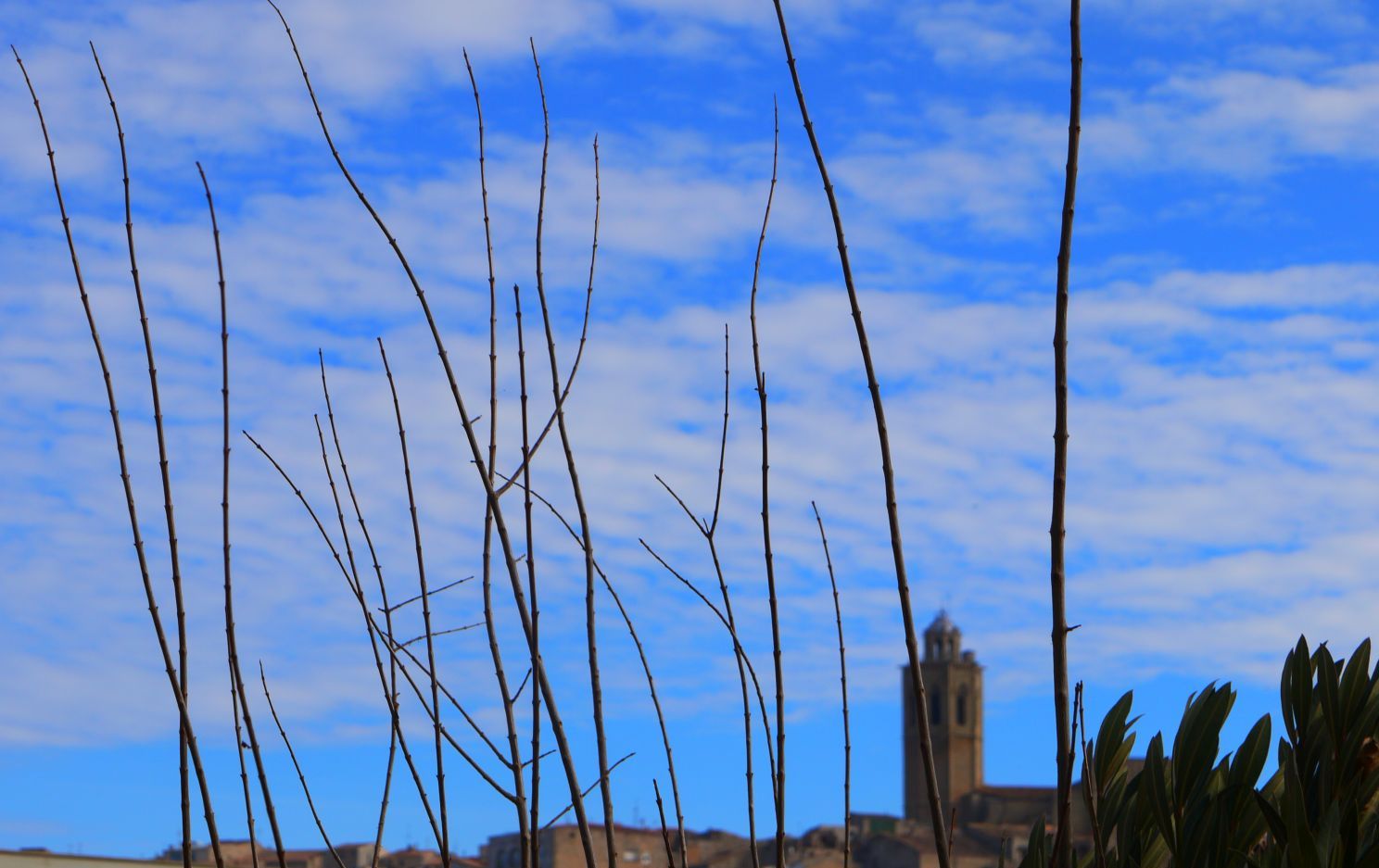 L’estela d’un avió es destaca damunt el núvols. Les flors que avancen la primavera maridades amb el record de viatges que desperta l’ocell volador, tot plegat, porta promeses de nous camins, de nous indrets…però sempre tornant a Cervera.
