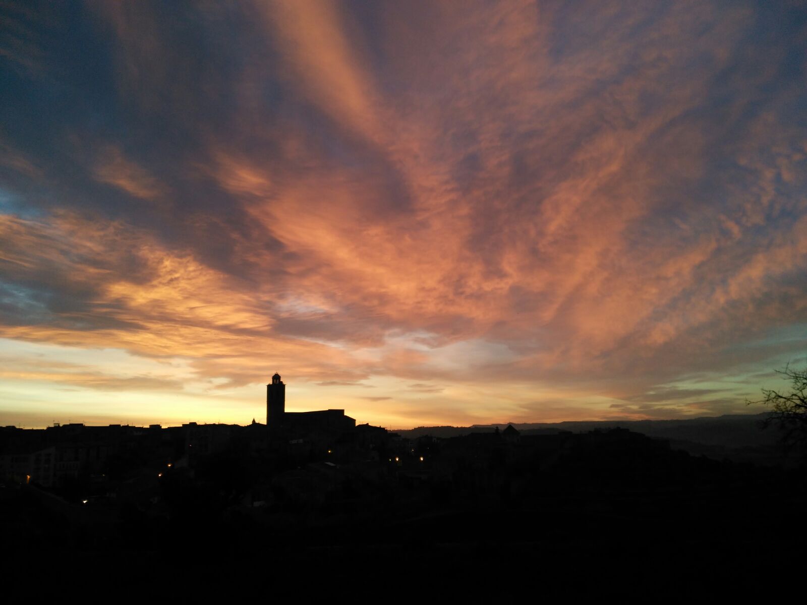 Les postes de sol a Cervera, moltes vegades esdevenen espectaculars. Aquesta imatge que m’ha cedit Xavier Rivera ens la mostra des de la vessant més desconeguda. Els darrers reflexes banyen de ple una part del casc històric de la ciutat. Aquí no podem veure-hi els llampants vermells, tarongesi grocs, però sí que poden gaudir amb la pedra daurada i els contorns destacats. Fixeu-vos en la paret de la muralla com de ben dibuixada es veu. Xavier, gràcies per aquesta preciosa posta de sol!