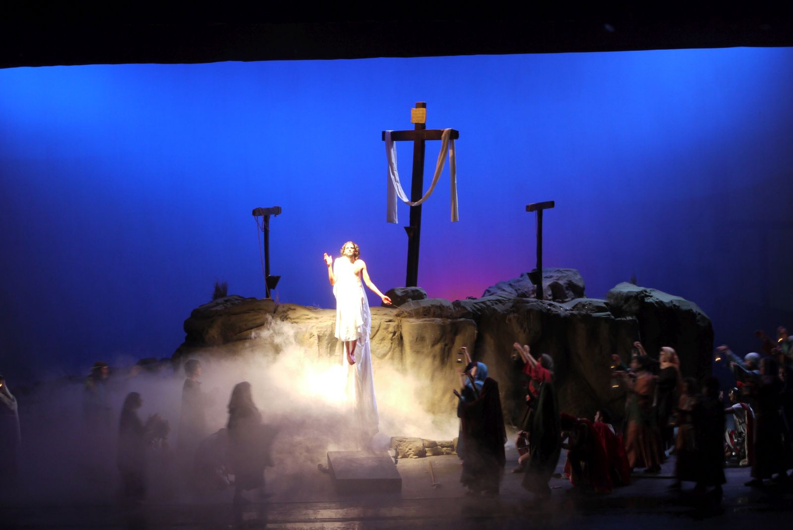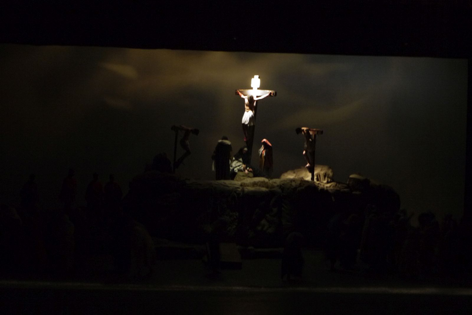 Hi ha un recull d’escenes que realment són espectaculars, emotives i vistoses: l’inici amb la desfilada de la gent que actua amb els fanals, el diumenge de rams i la Resurrecció, amb l’afegir-se tots els que actuen i treballen per la Passió en aquesta escena, que omple totalment l’escenari!