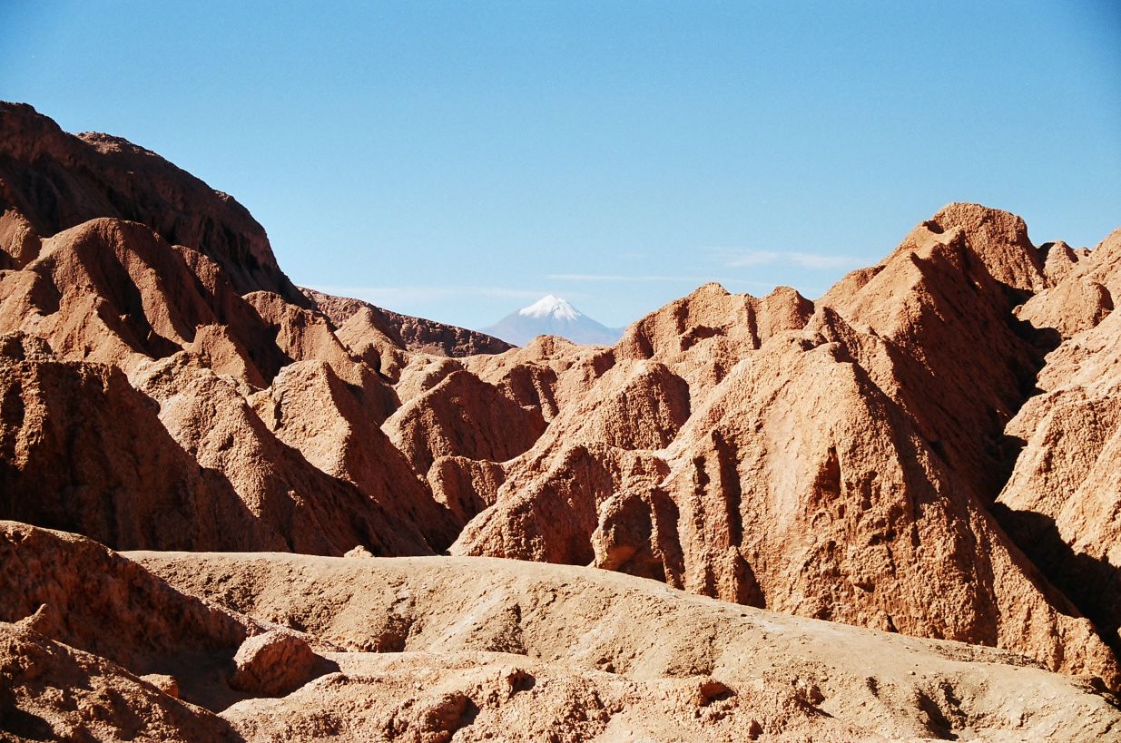 Cordillera de la Sal. Desert d’Atacama. Xile. Un dels llocs més espectaculars d’Amèrica pel que fa a terres seques i desèrtiques. Al fons, es veu el conegut volcà Licancabur.