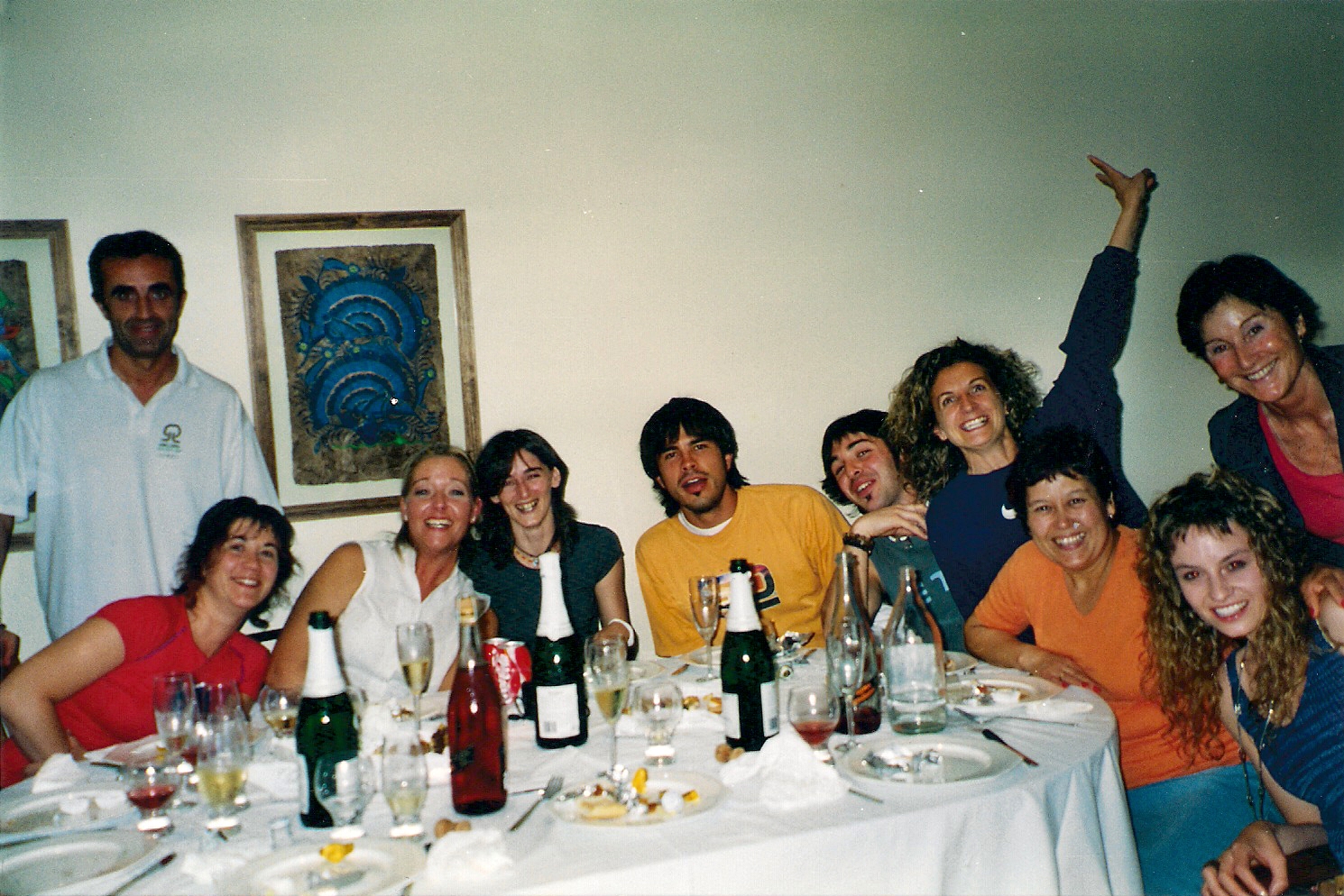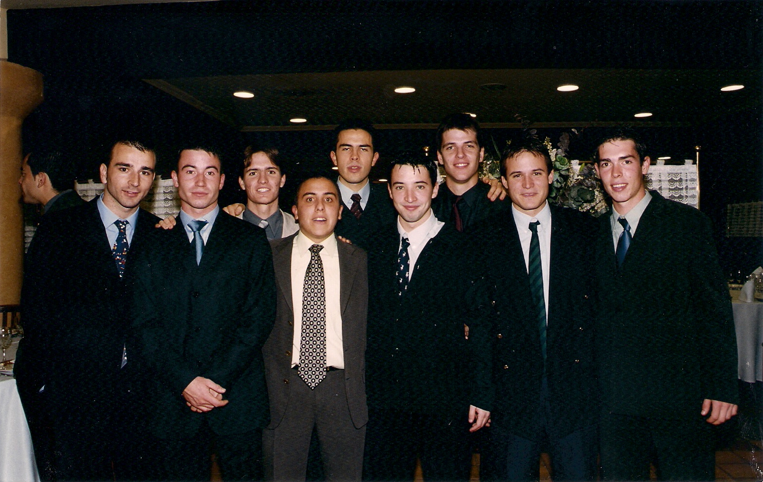 Temps per estudiar i temps per treballar. Aquí el vèiem en una celebració amb els companys i els propietaris del gimnasi. En aquest gimnasi vaig assistir-hi un temps i en guardo molt bon record. És on vaig tenir amb l’Hugo un tracte personal ja que era el meu professor. Amable, atent, gran coneixedor del tema i molt agradable va deixar molt bon record entre els seus i les seves alumnes.