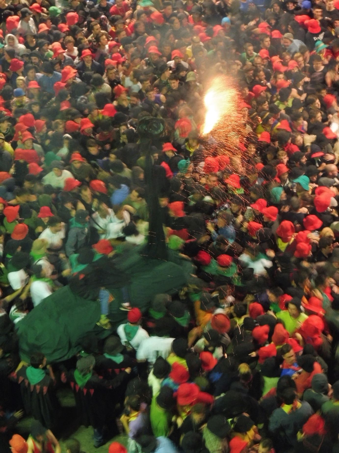 Altra volta la gent es va apartant perquè els Nans Vells repeteixen el seu Ball. Us recordo que a la Patum totes les actuacions es fan dues vegades, cadascuna d’elles en el mateix ordre i que, al final de la segon, surten els Plens fent la seva orgia infernal. N’hi van cent i cadascun d’ells porta un acompanyant que el guia emmig del brogit del foqueral.