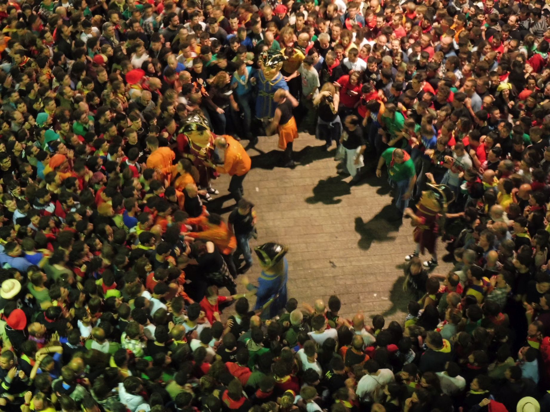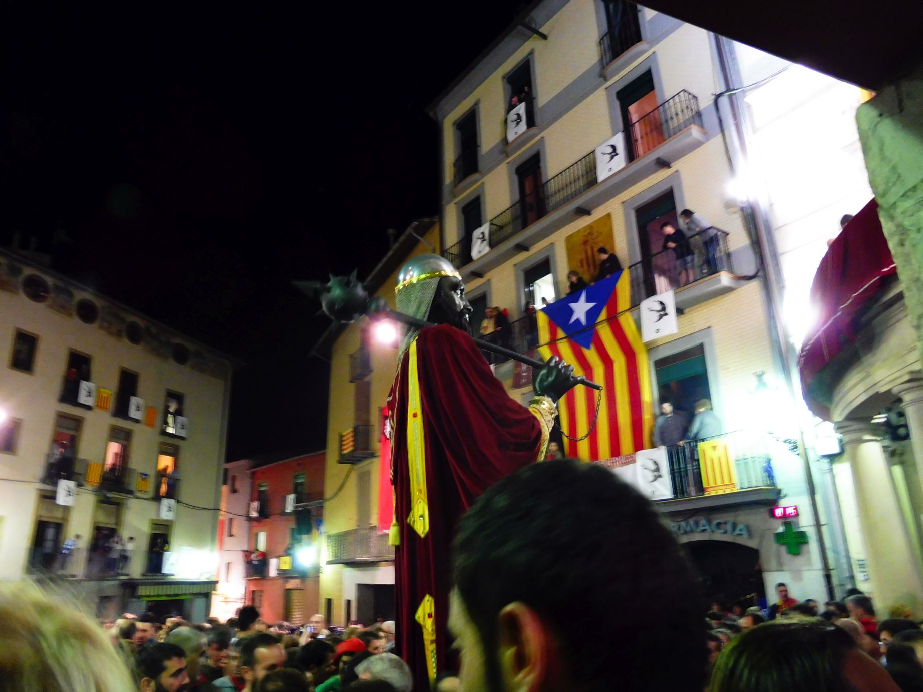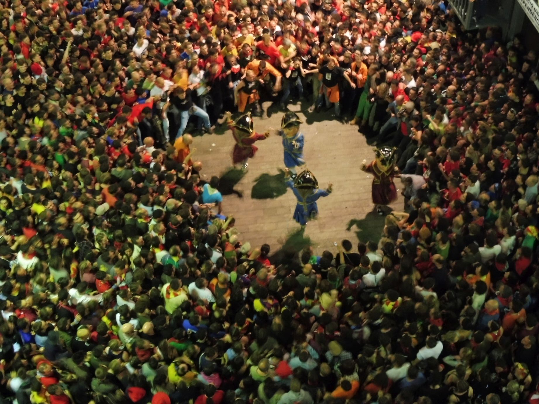 En acabar i ja a la plaça la perspectiva canvia. Els gegants se’n van a descansar ja que sempre la Patum es repeteix dues vegades. És la tradició.