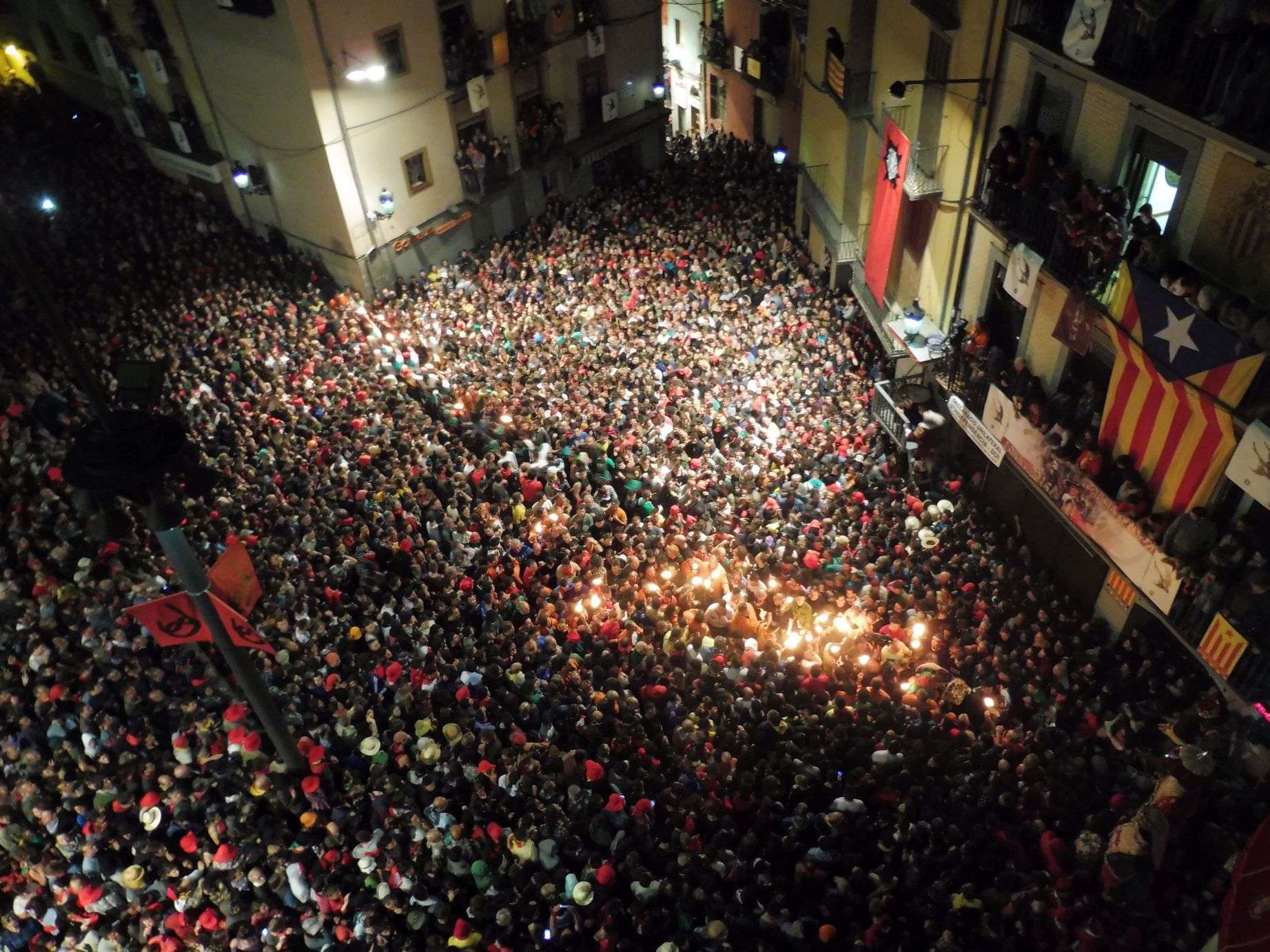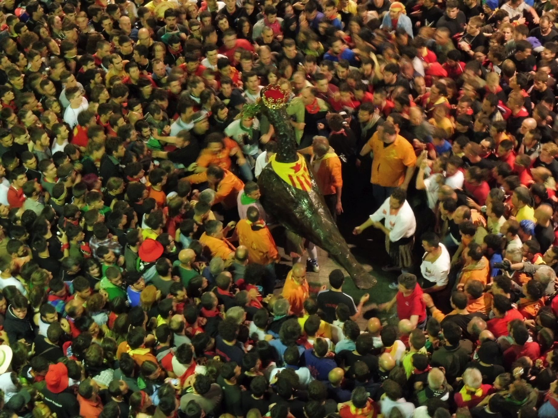 Diuen que el dijous d’enguany va ser un dels anys amb més assistència de gent. La imatge en dóna fe. L’Àliga no té massa lloc per moure’s!!!!!!!