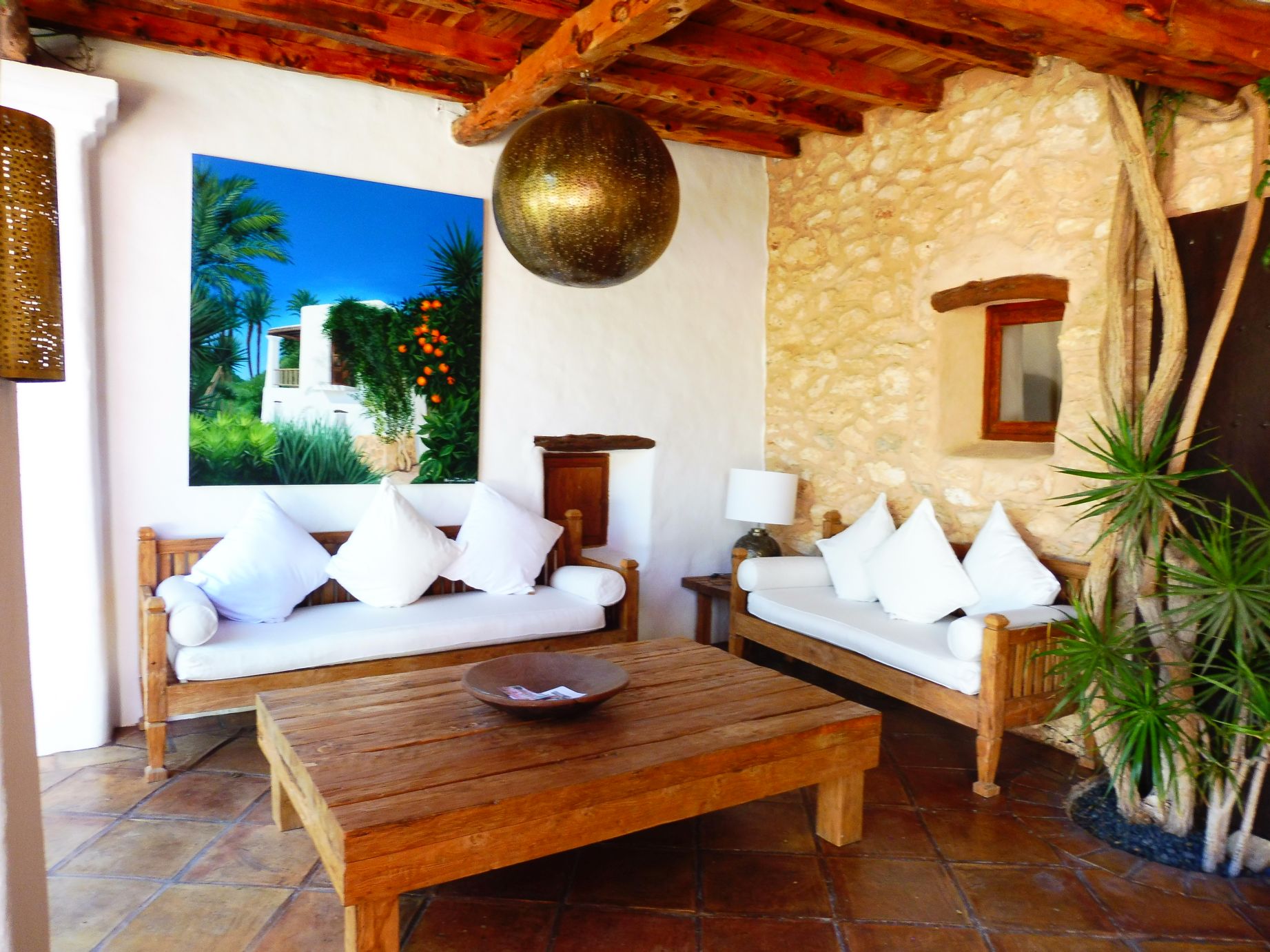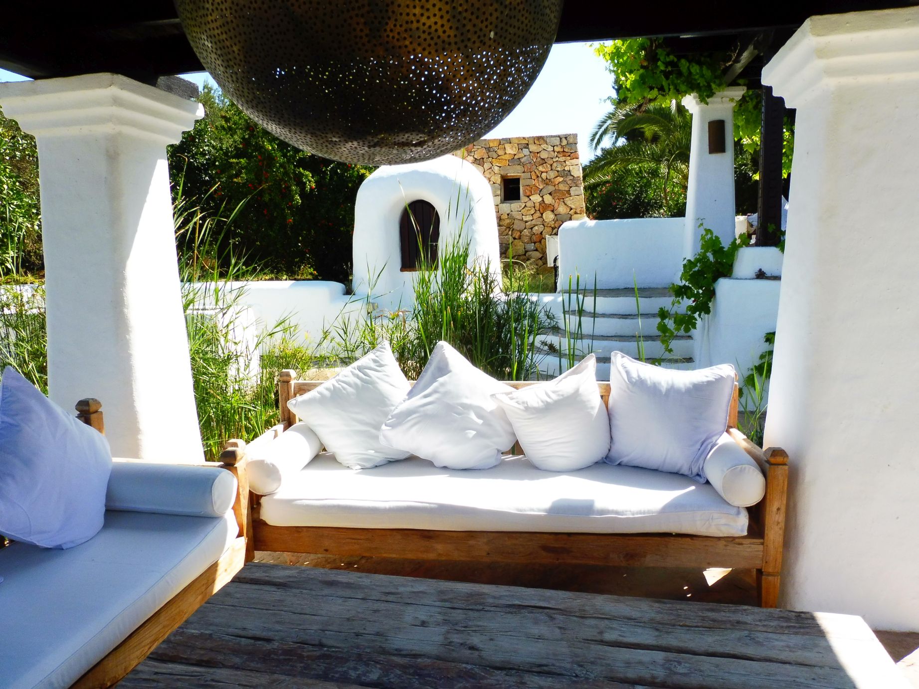L’arquitectura tradicional eivissenca hi és ben present. I la blancor enlluernadora també.