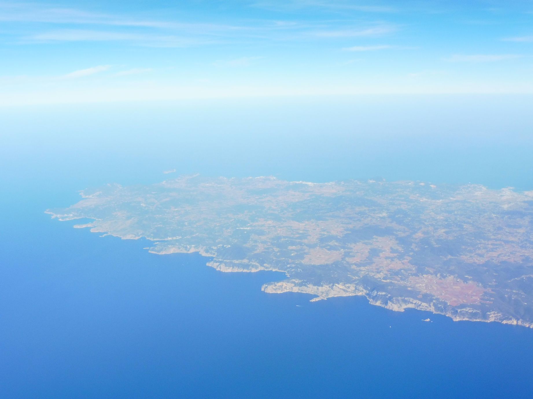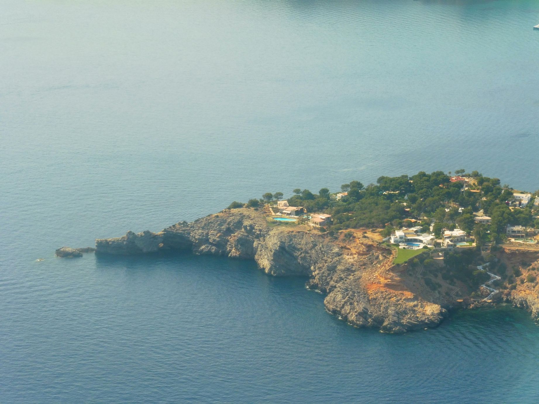 De l’interior de l’illa passem a veure-la amb vista d’ocell mentre l’avió s’enlaira.