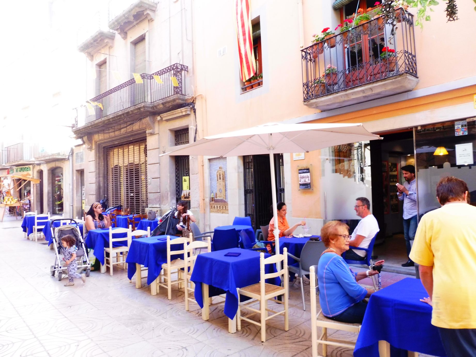 Per tal de facilitar amb comoditat l’accés als panels expositius es van treure tot el mobiliaride les sales de la Cafeteria “el Campanar” que va quedar col·locat al bell mig del carrer Combat. Les taules estaven vestides amb uns tapetes blaus i tot el conjunt feia molt goig. Aquí podeu veure unes quantes imatges d’aquest espai acabat de muntar a la terrassa, així com també de la decoració d’aquest espai estiuenc de “el Campanar”.