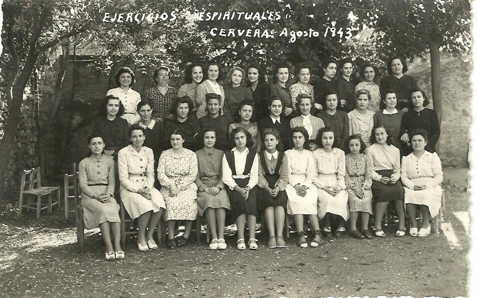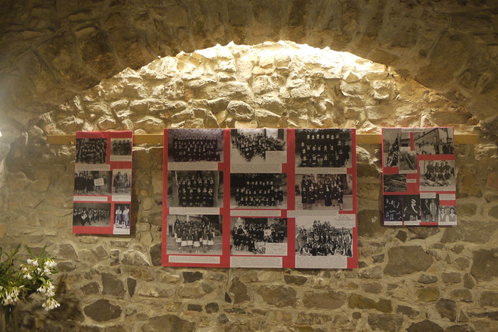 La fotografia del cartell, cedida per Ramon M. Razquin, és la primera que tenim del pas de les alunnes per aquest centre educatiu. La joveneta, només tenia 10 anys, que està asseguda a l’esquerra és la seva àvia, Ramona Gené.