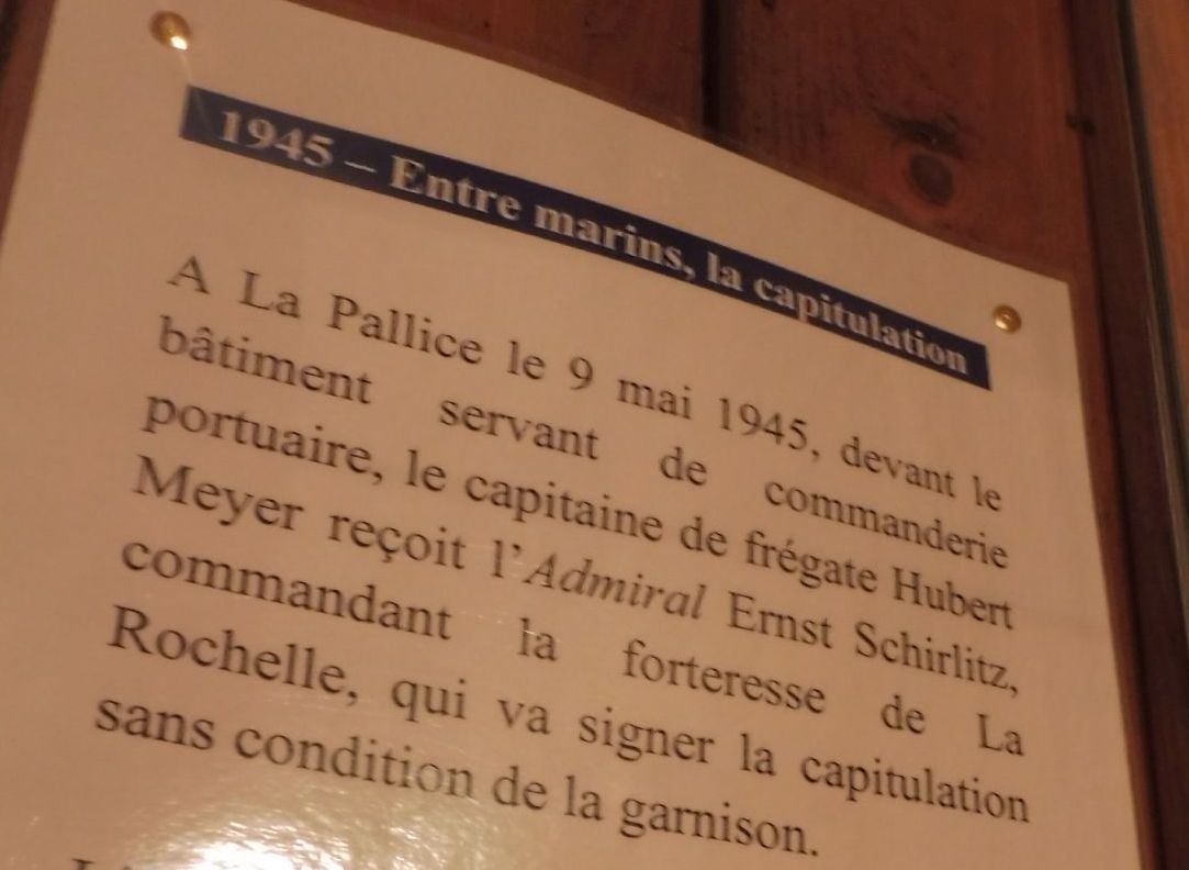 Eren els marins els que residien i dominaven aquesta importantísima base naval de submarins anomenada La Pallise. Com podeu veure en aquest rètol s’informa de la capitulació.